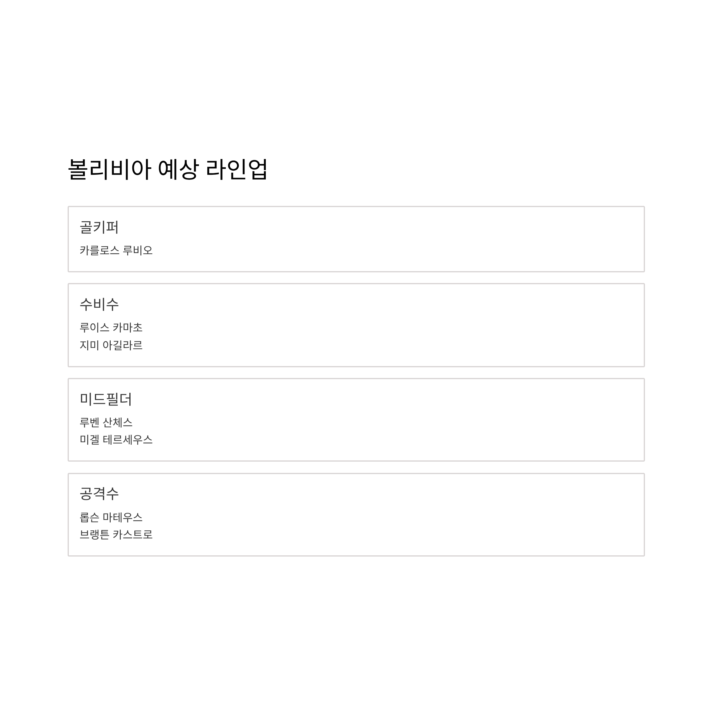 볼리비아는 기동력과 압박을 살려 한국의 중앙을 저격하는 전략을 택할 것으로 보입니다.