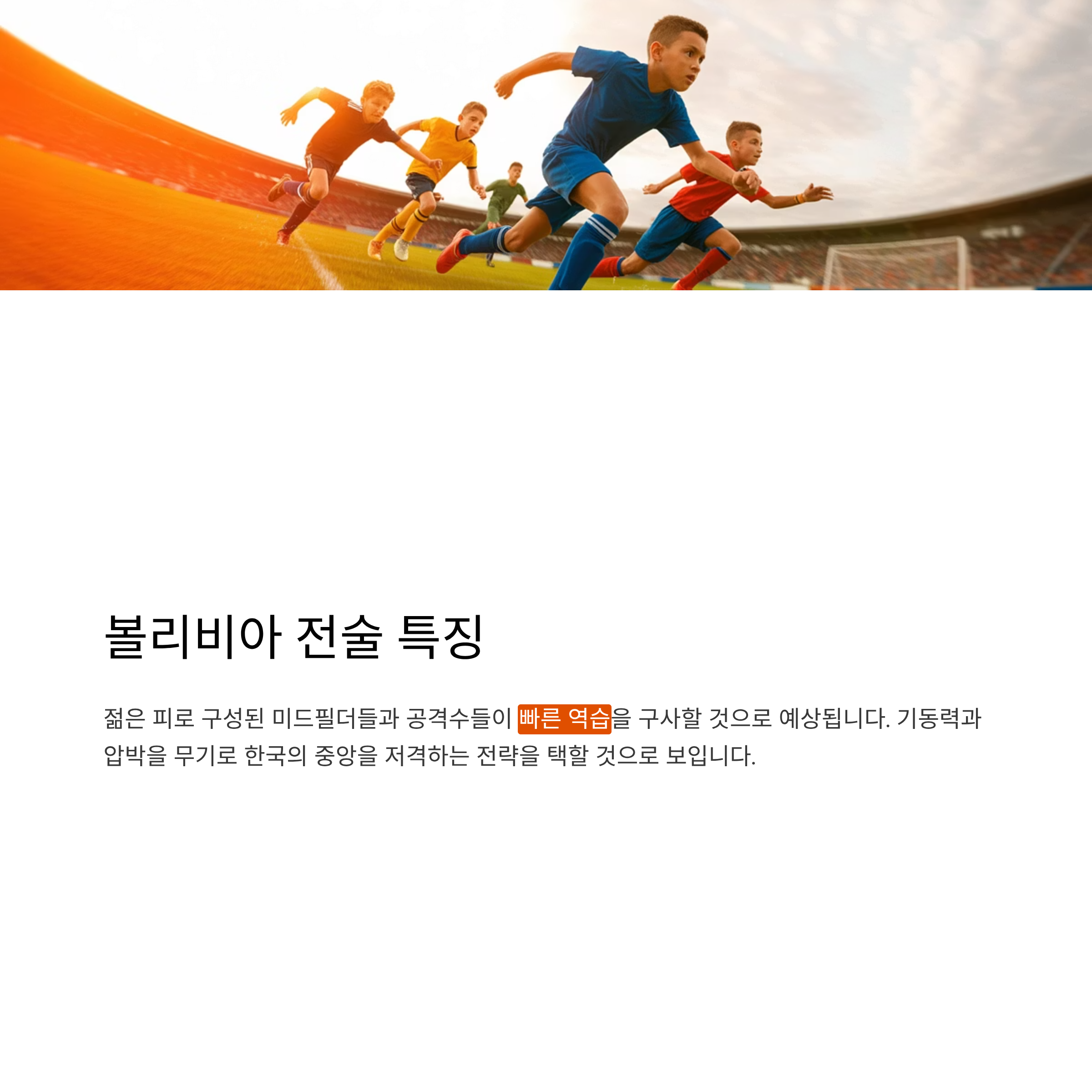 - 볼리비아의 강력한 역습 대응 능력 및 수비 안정성