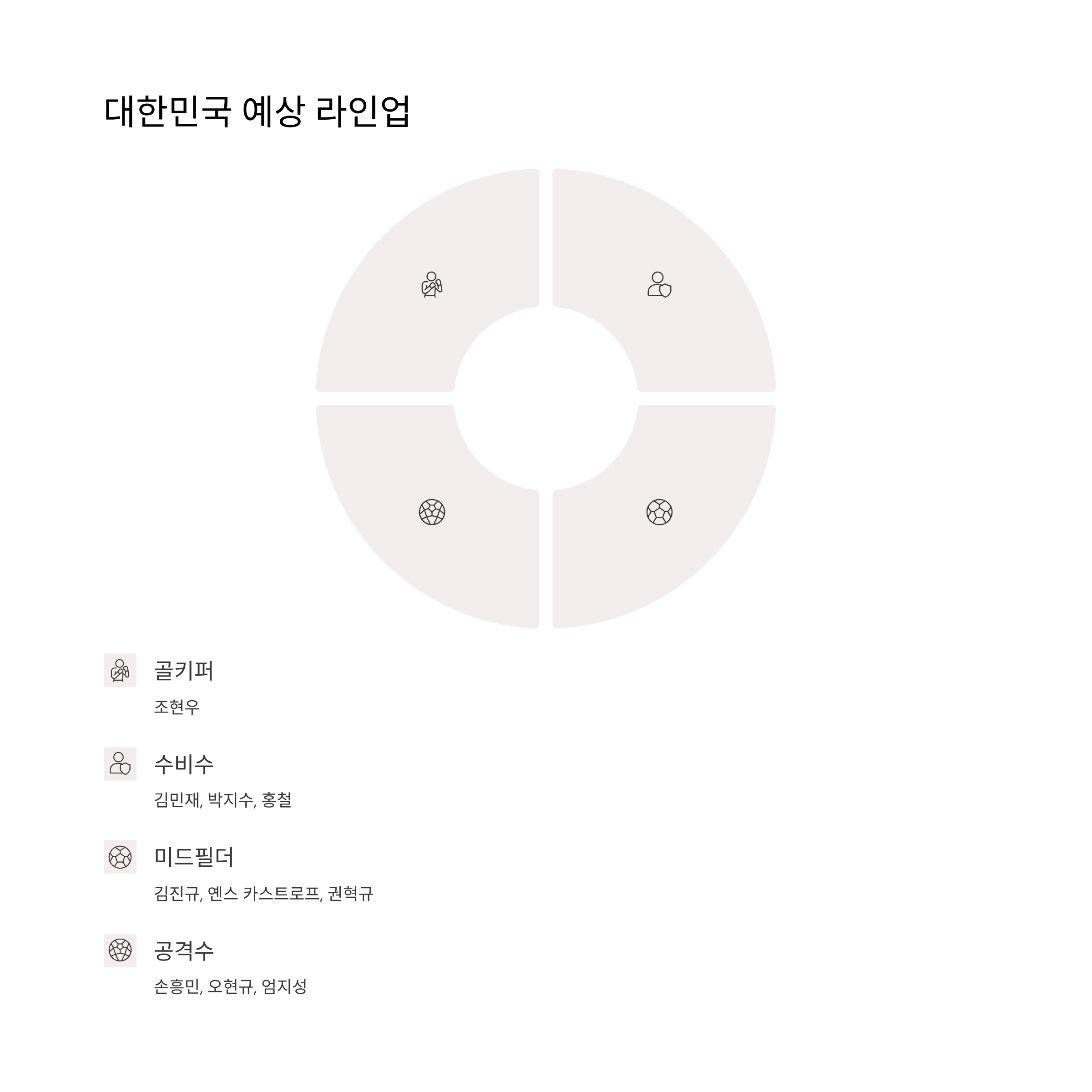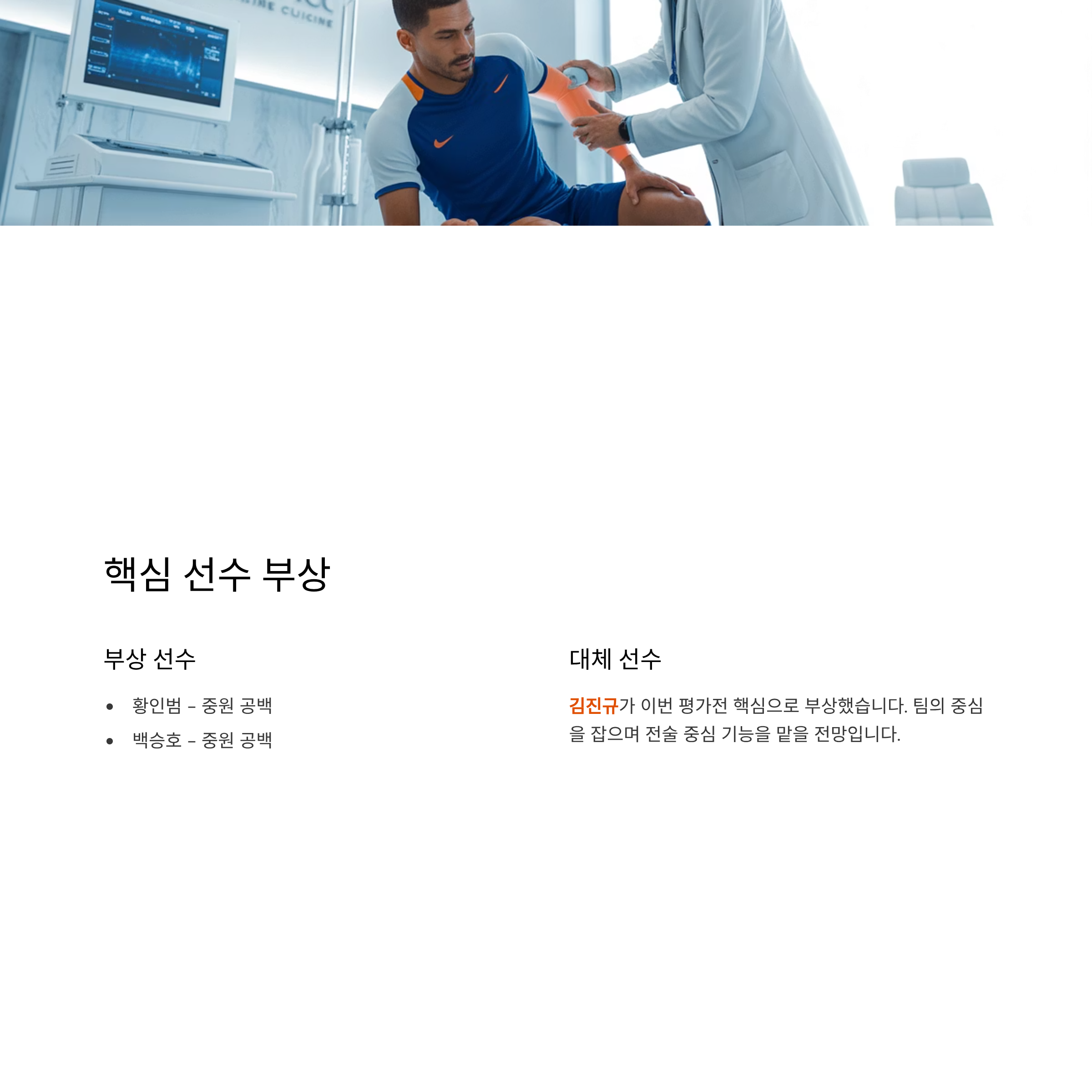 중원에서 부상으로 빠진 황인범과 백승호의 공백을 대체할 김진규가 이번 평가전 핵심으로 부상했습니다. 팀의 중심을 잡으며 전술 중심 기능을 맡을 전망입니다.