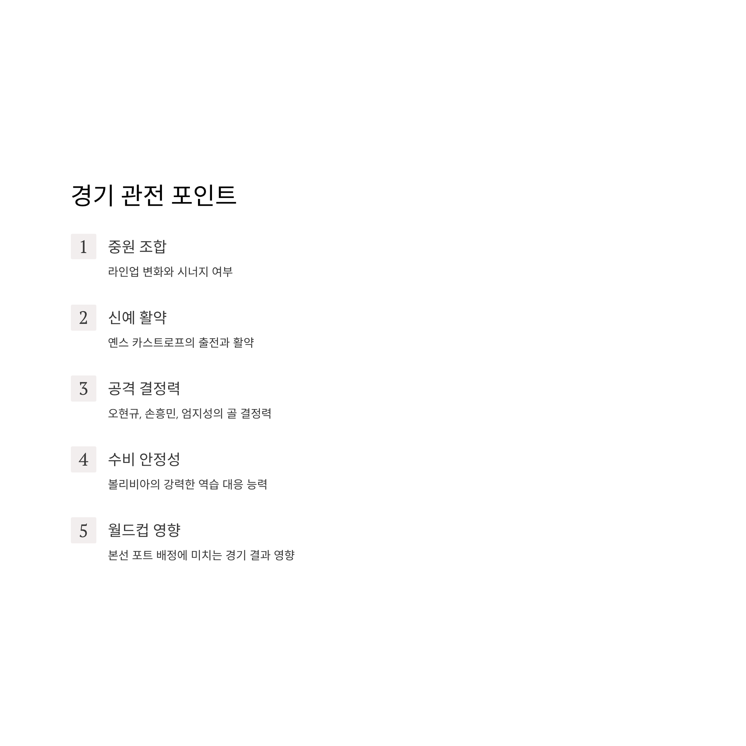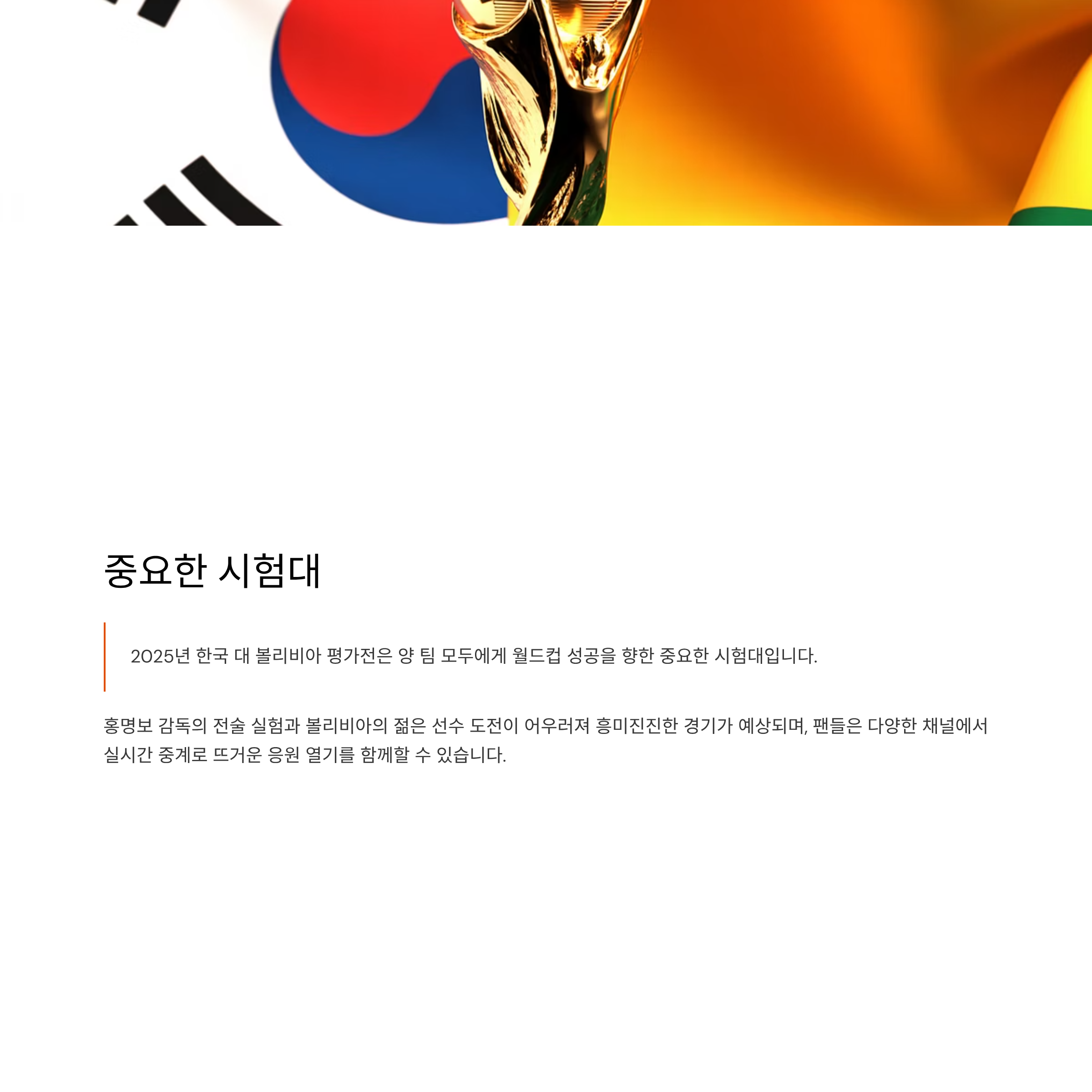 2025년 한국 대 볼리비아 평가전은 양 팀 모두에게 월드컵 성공을 향한 중요한 시험대입니다.
