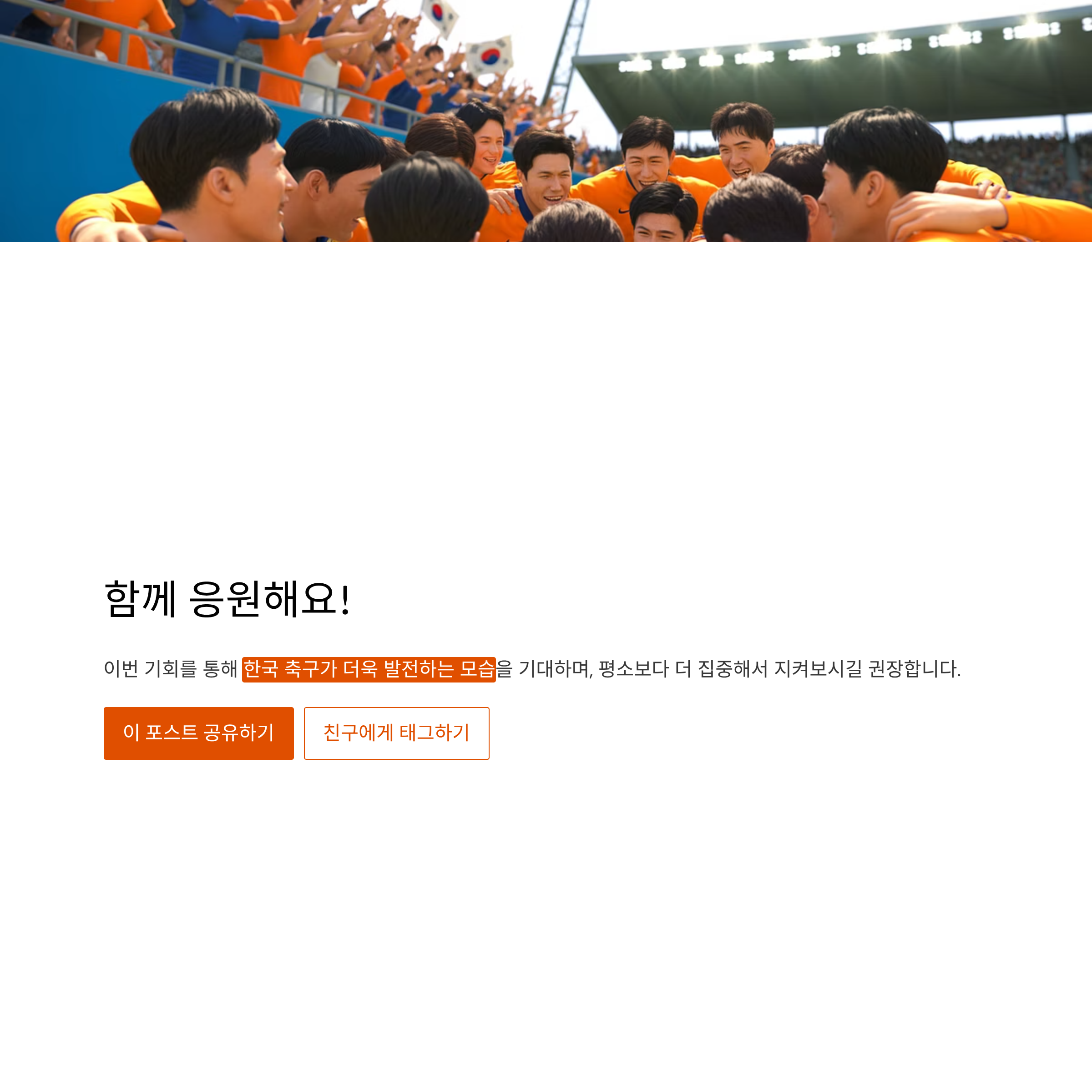 이번 기회를 통해 한국 축구가 더욱 발전하는 모습을 기대하며, 평소보다 더 집중해서 지켜보시길 권장합니다.