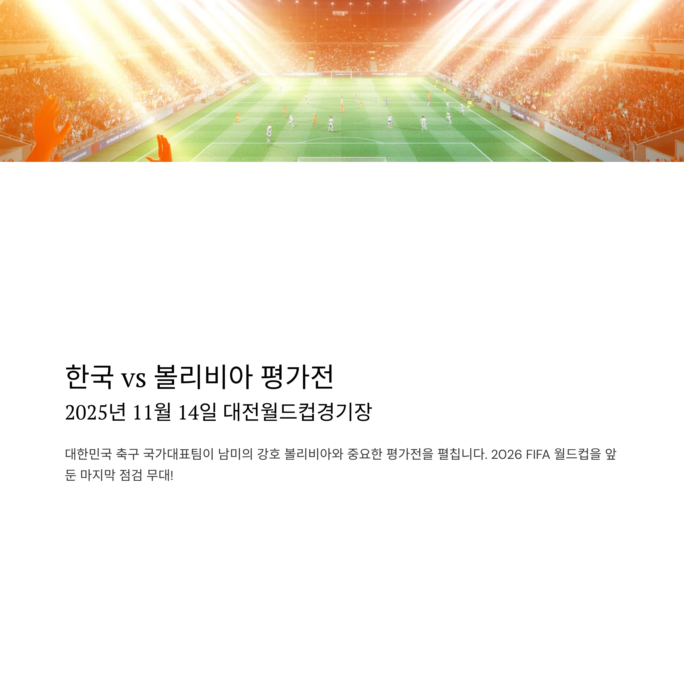 다가오는 2025년 11월 14일, 대한민국 축구 국가대표팀이 남미의 강호 볼리비아와 대전월드컵경기장에서 중요한 평가전을 펼칩니다.