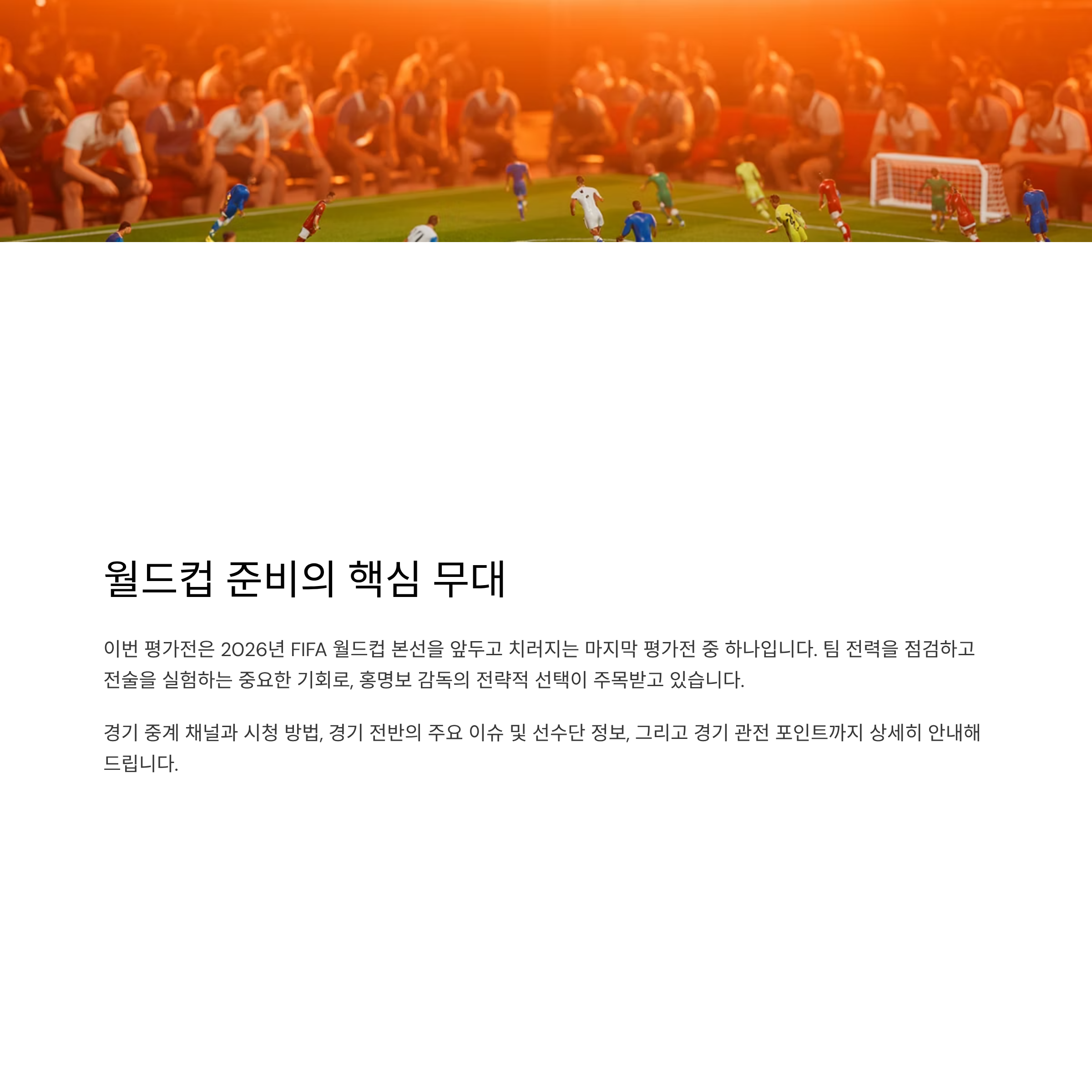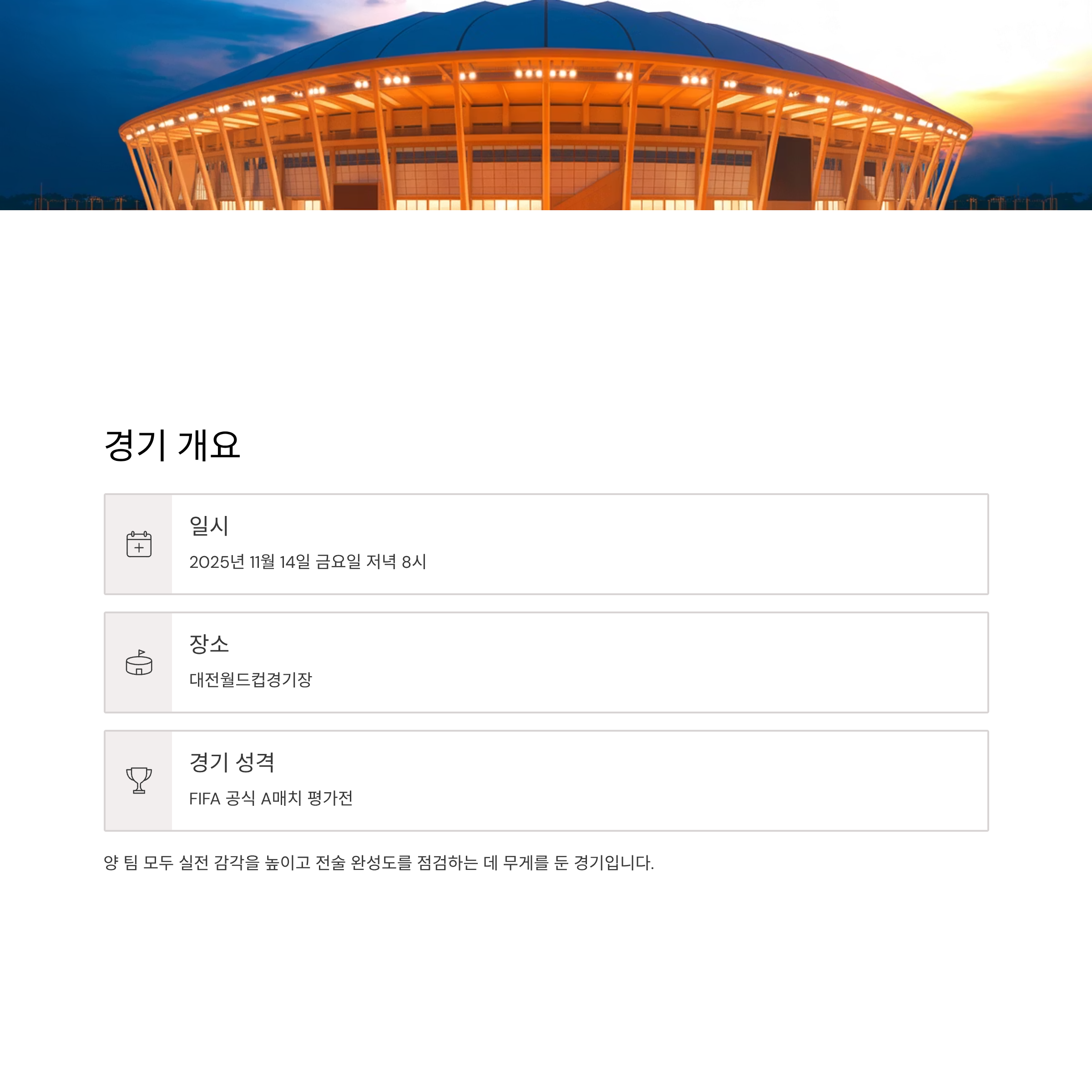이번 평가는 2026년 FIFA 월드컵 본선을 앞두고 치러지는 마지막 평가전 중 하나로, 팀 전력을 점검하고 전술을 실험하는 중요한 무대입니다.