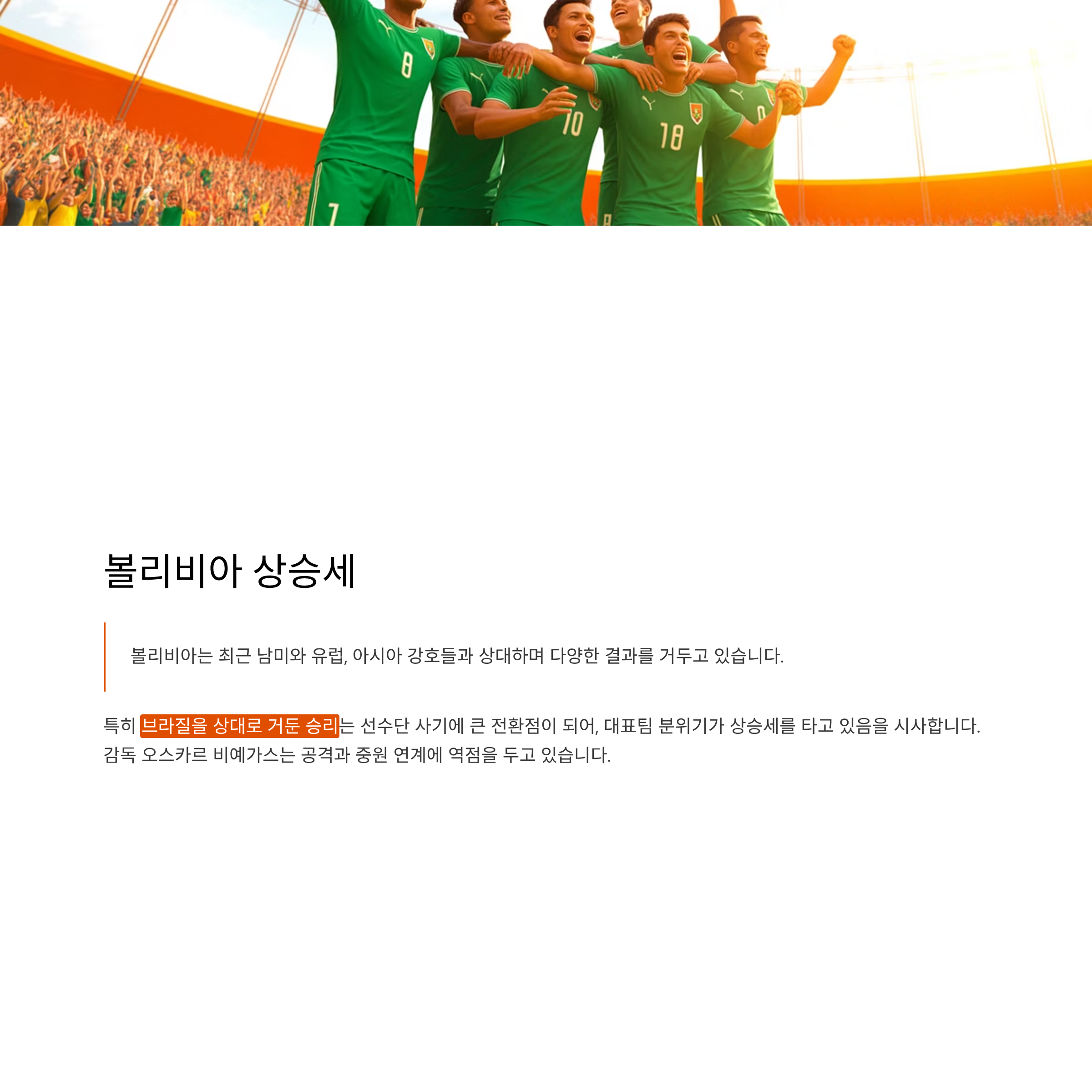 특히 브라질을 상대로 거둔 승리는 선수단 사기에 큰 전환점이 되어, 대표팀 분위기가 상승세를 타고 있음을 시사합니다.