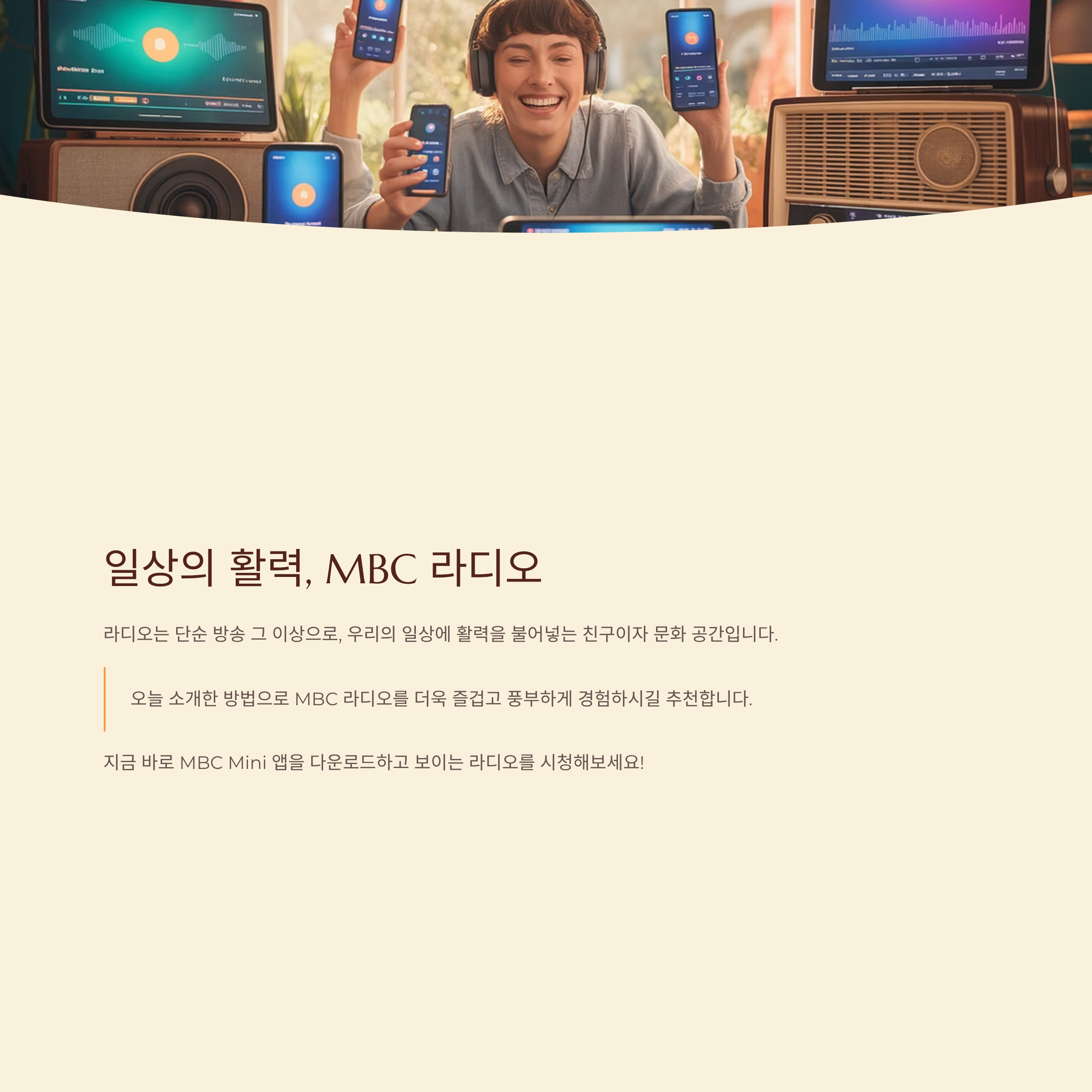 라디오는 단순 방송 그 이상으로, 우리의 일상에 활력을 불어넣는 친구이자 문화 공간입니다. 오늘 소개한 방법으로 MBC 라디오를 더욱 즐겁고 풍부하게 경험하시길 추천합니다.