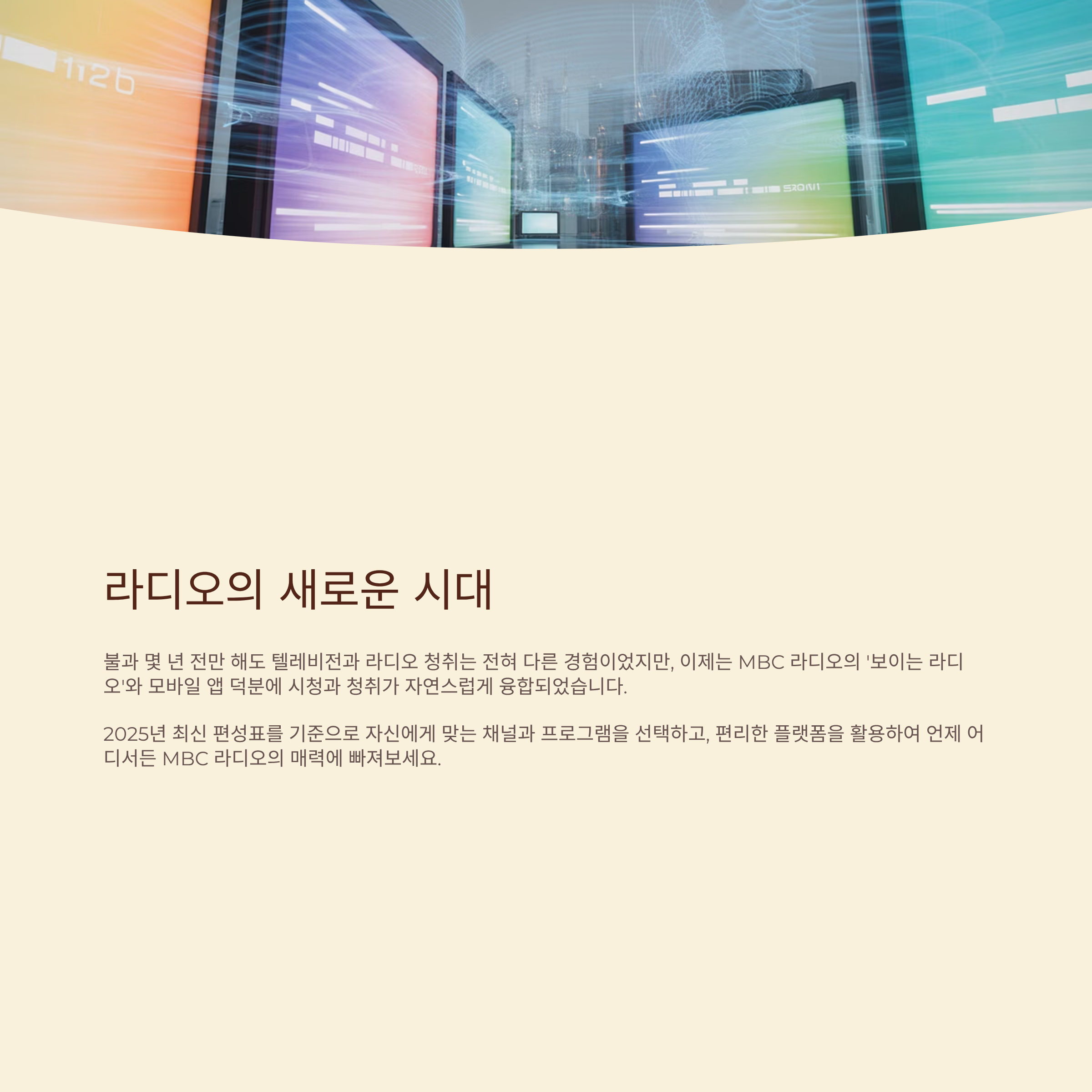 불과 몇 년 전만 해도 텔레비전과 라디오 청취는 전혀 다른 경험이었지만, 이제는 MBC 라디오의 ‘보이는 라디오’와 모바일 앱 덕분에 시청과 청취가 자연스럽게 융합되었습니다.