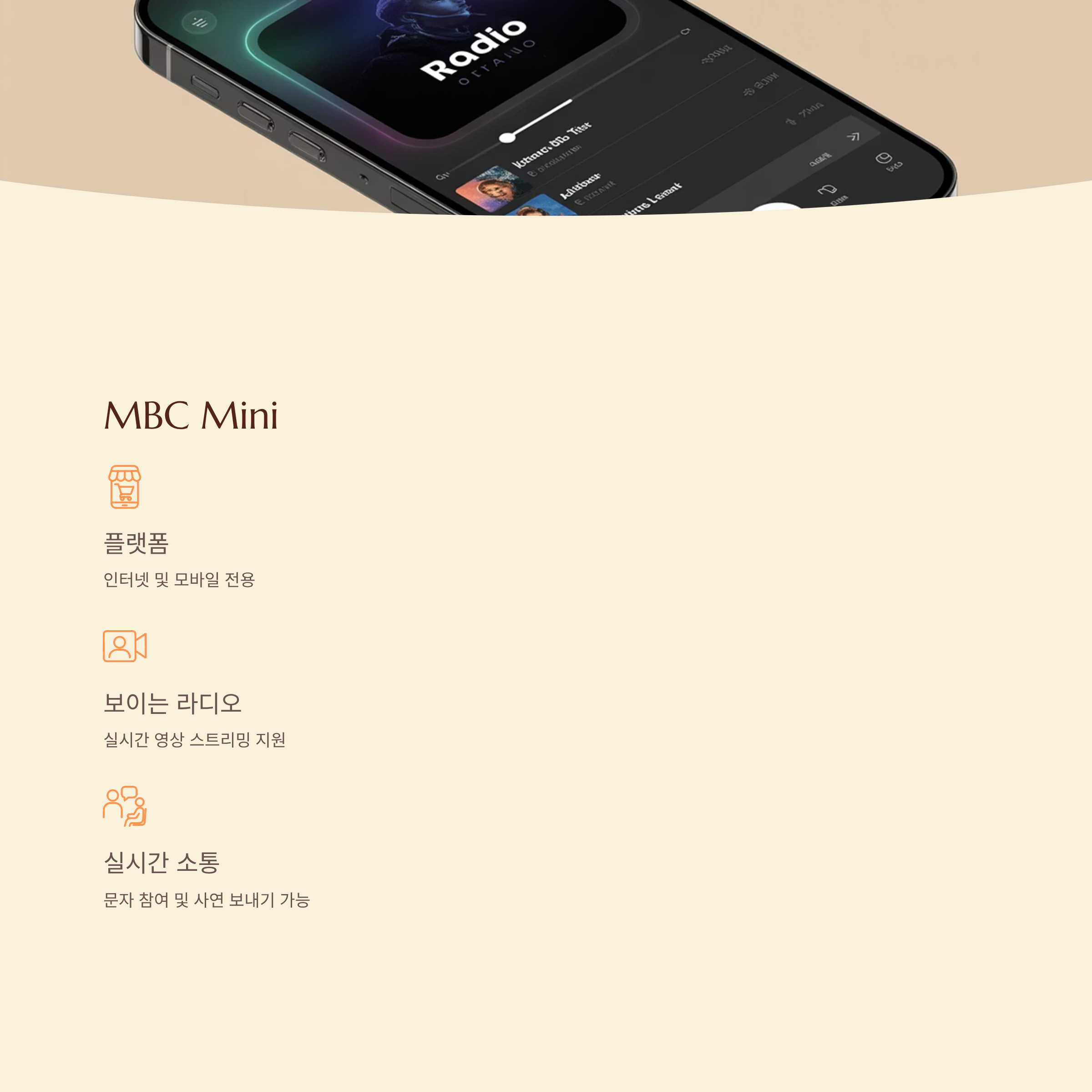 - 특징: 청취자와 실시간 소통 기능 탑재, 문자 참여 및 사연 보내기 가능