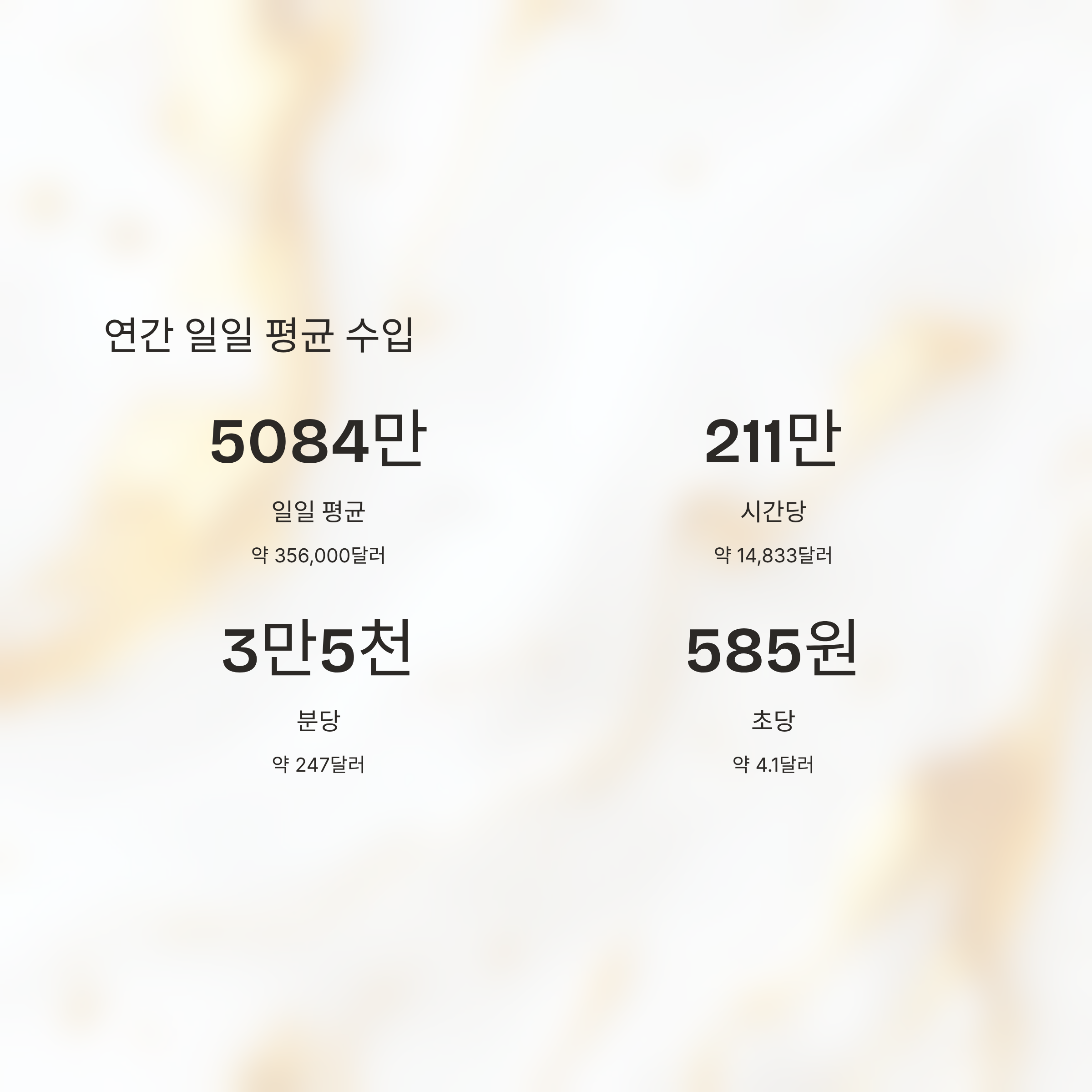 일일 평균 수입: 약 356,000달러 (약 5,084만원)