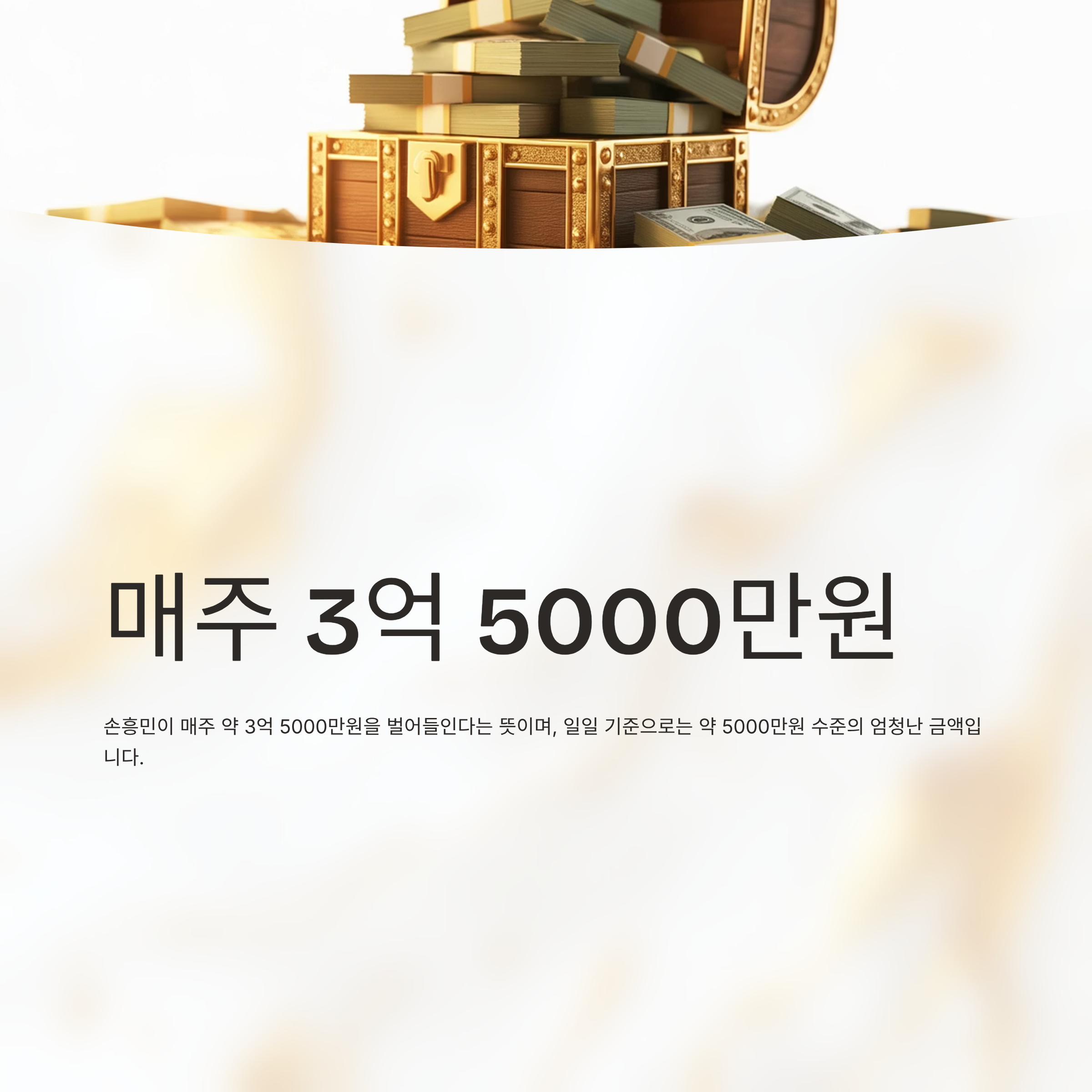 이는 손흥민이 매주 약 3억 5000만원을 벌어들인다는 뜻이며, 일일 기준으로는 약 5000만원 수준의 엄청난 금액입니다.