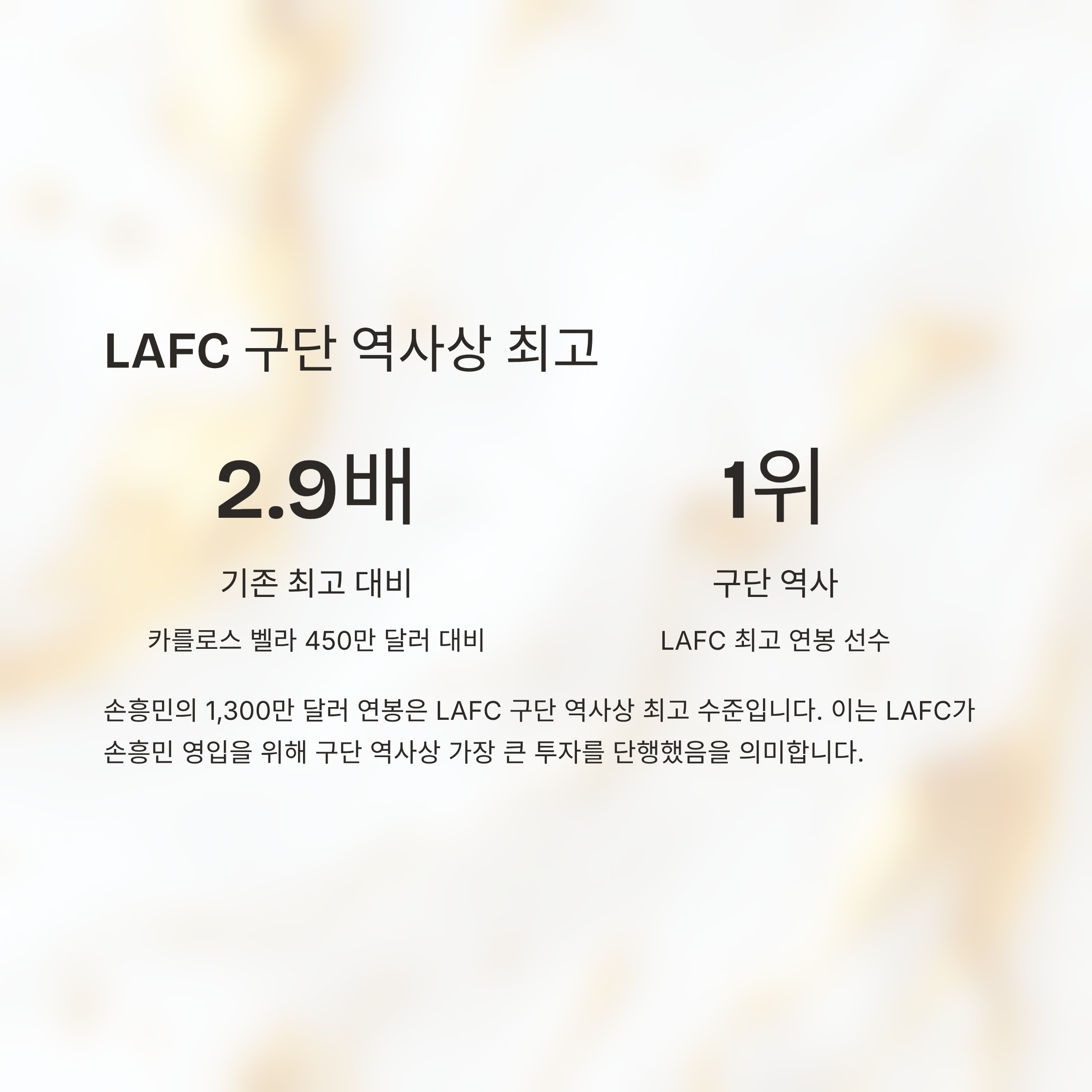 이는 LAFC가 손흥민 영입에 얼마나 극도의 자원 집중을 했는지를 보여주는 명확한 지표입니다.