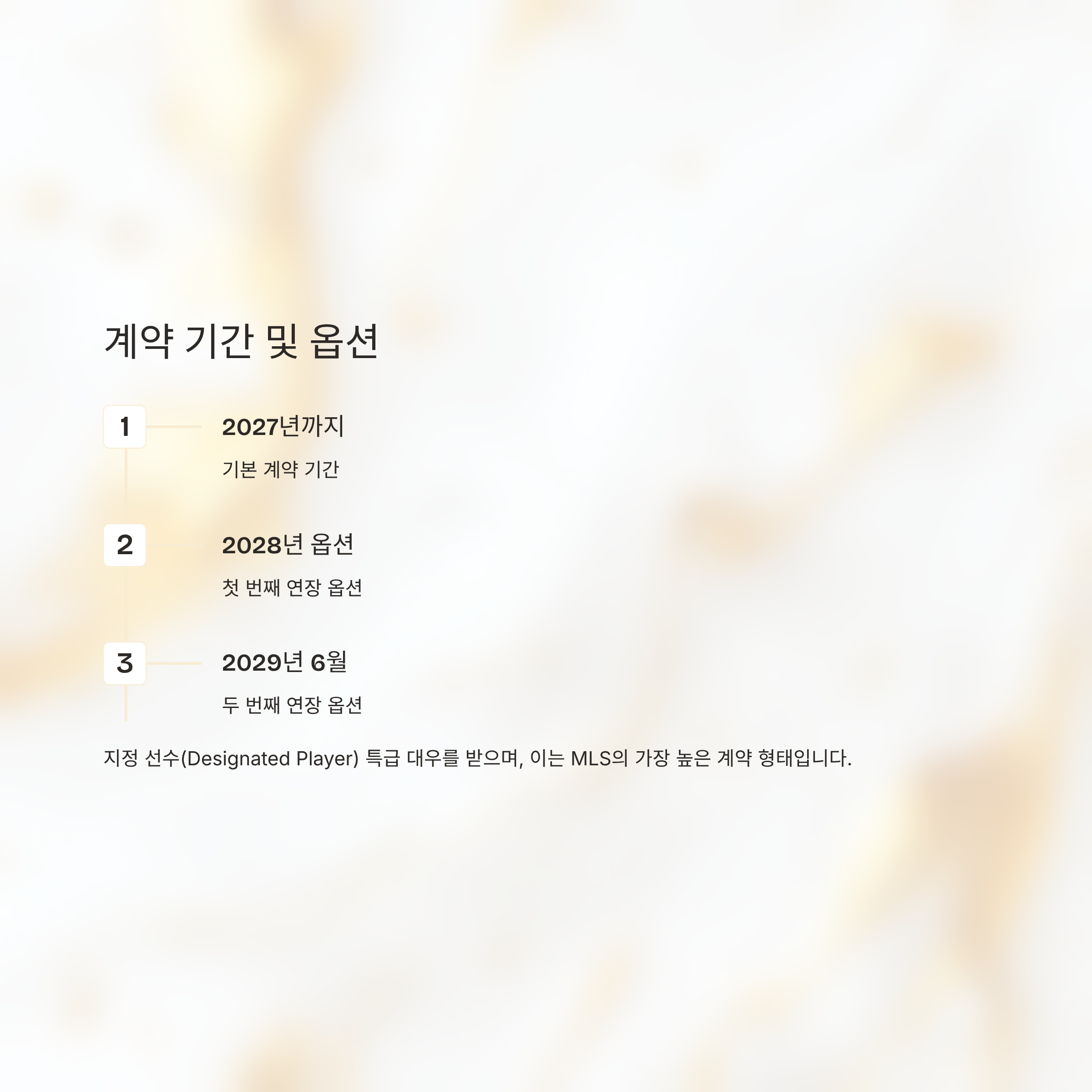지정 선수(Designated Player) 특급 대우를 받으며, 이는 MLS의 가장 높은 계약 형태입니다.