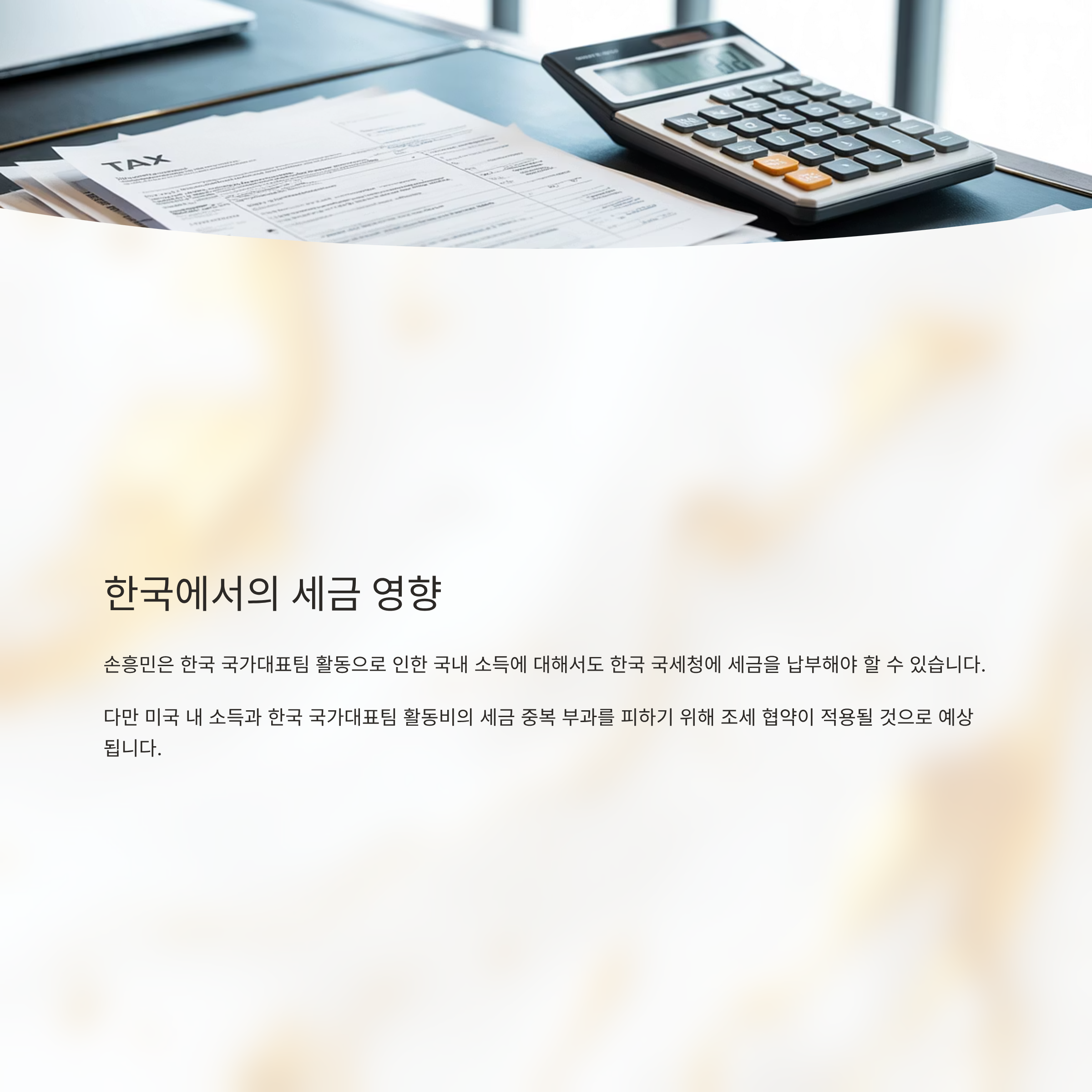다만 미국 내 소득과 한국 국가대표팀 활동비의 세금 중복 부과를 피하기 위해 조세 협약이 적용될 것으로 예상됩니다.