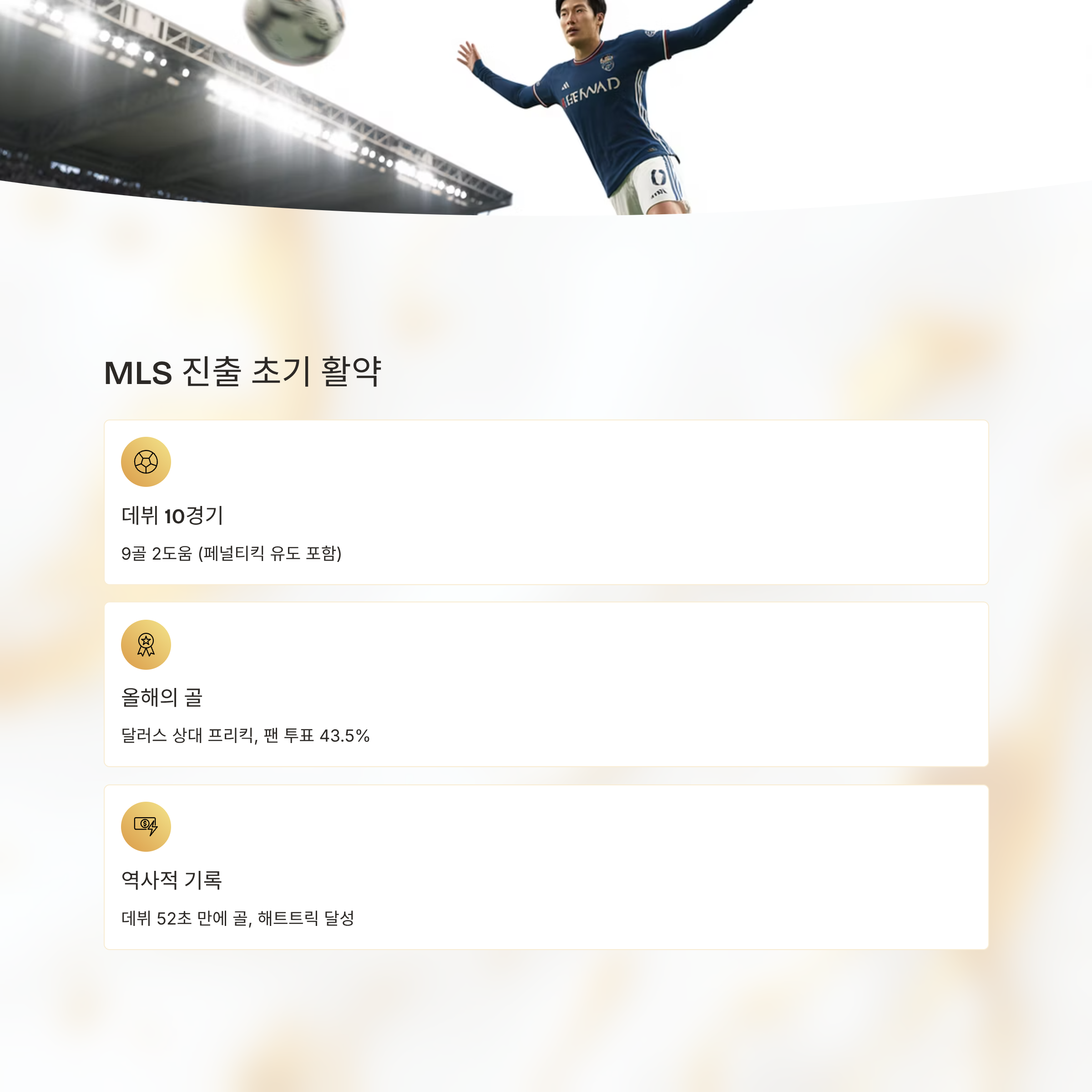 MLS 데뷔 후 10경기: 9골 2도움 (페널티킥 유도 포함)