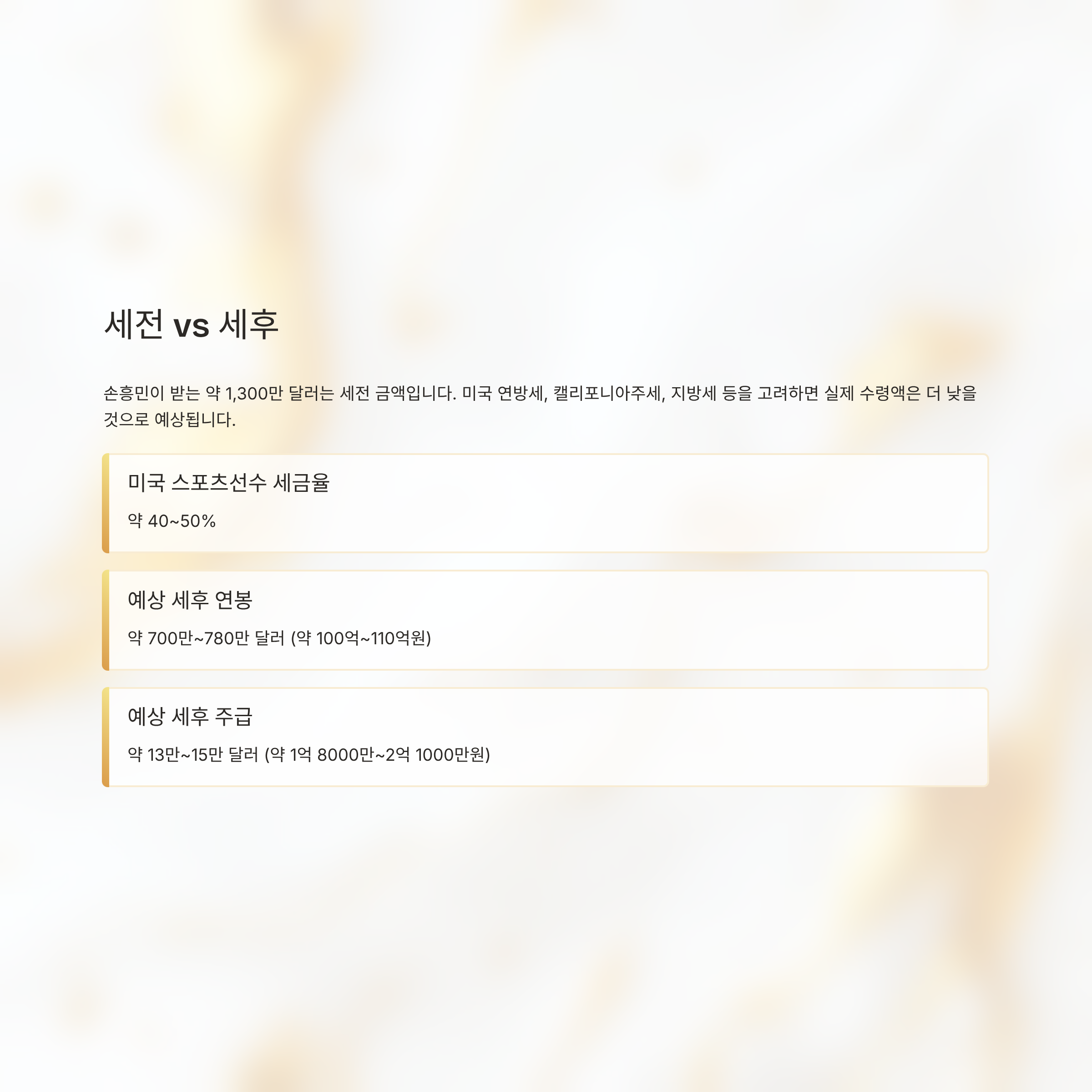 손흥민이 받는 약 1,300만 달러는 세전 금액입니다.
