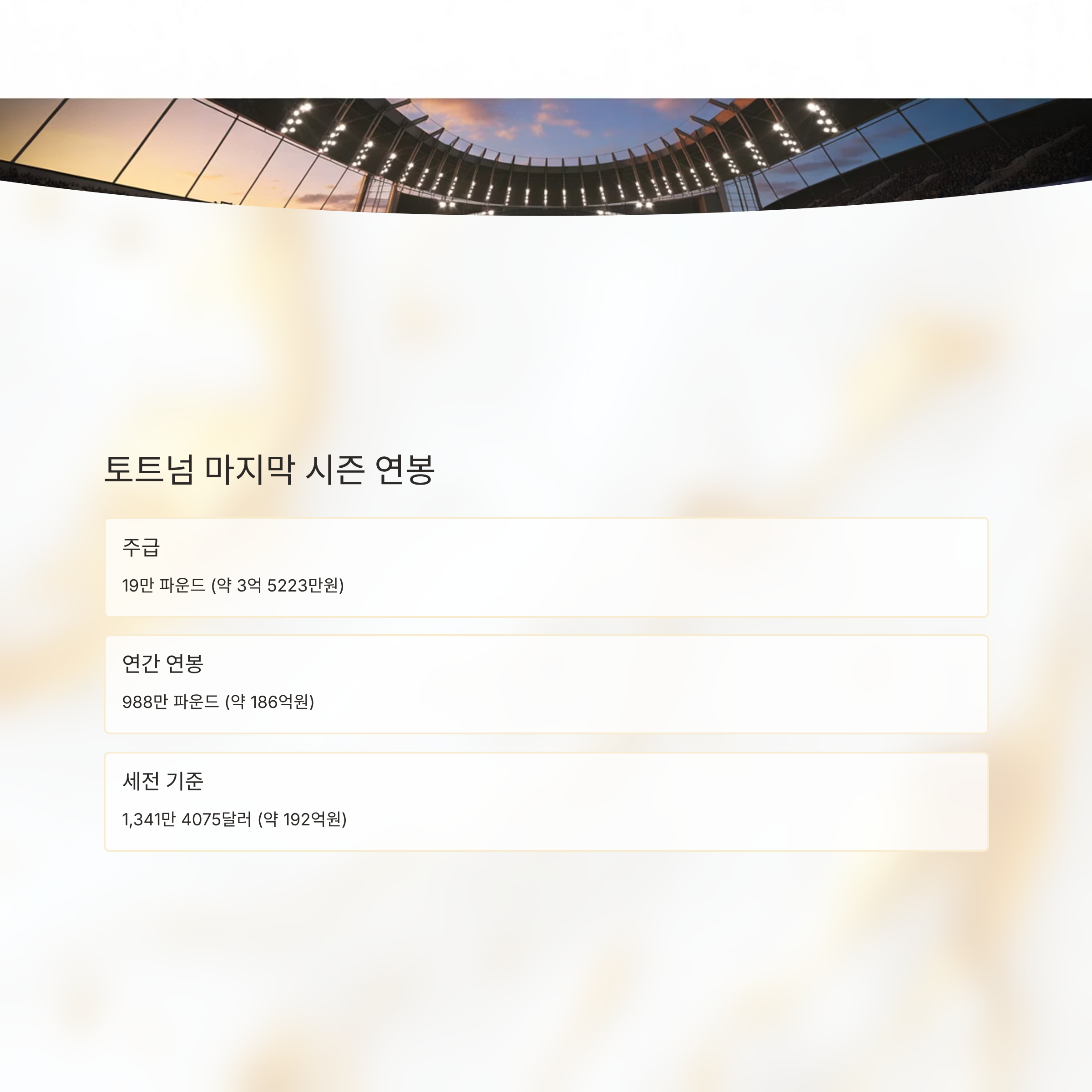 손흥민이 토트넘에서 받던 최종 연봉은 다음과 같습니다.