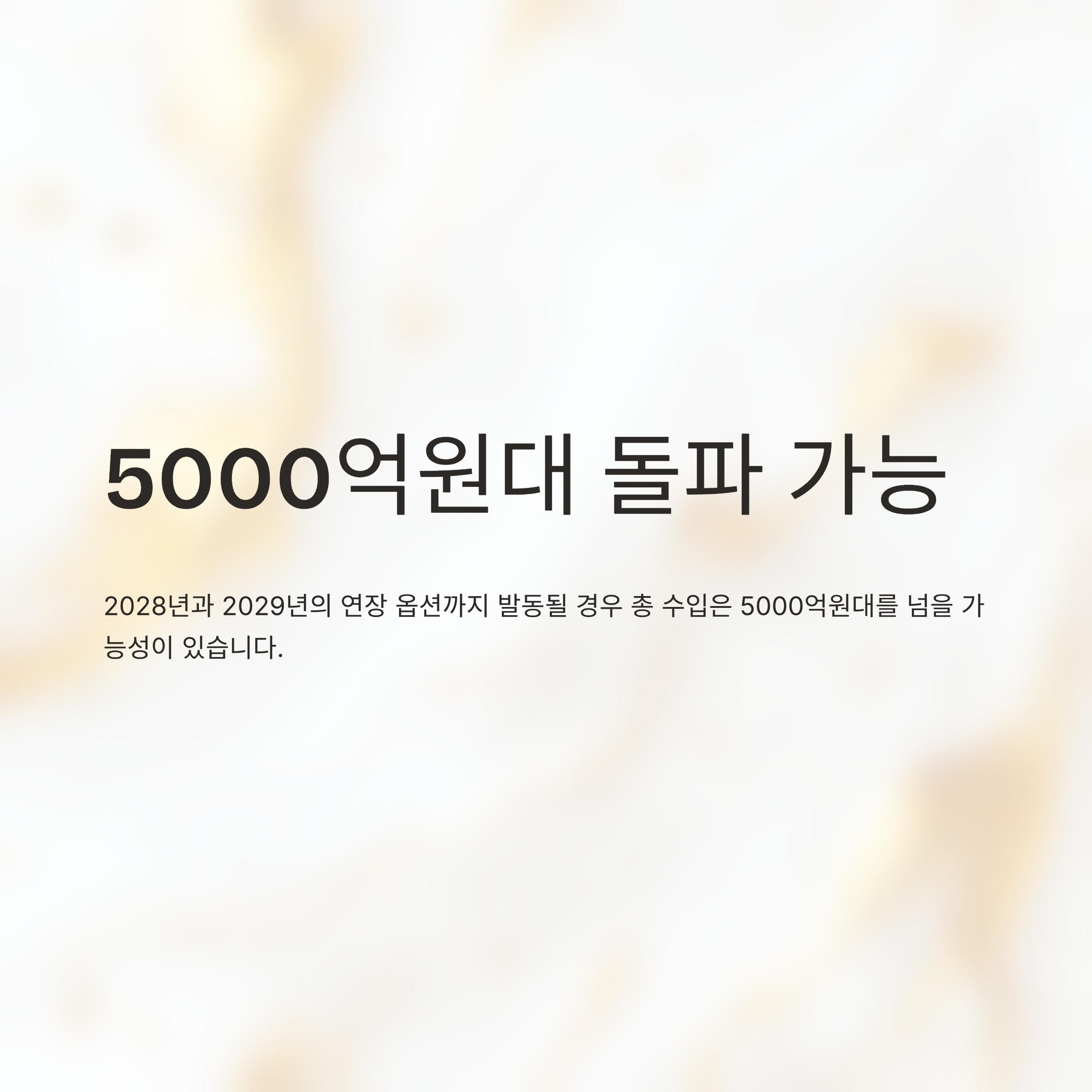 2028년과 2029년의 연장 옵션까지 발동될 경우 총 수입은 5000억원대를 넘을 가능성이 있습니다.