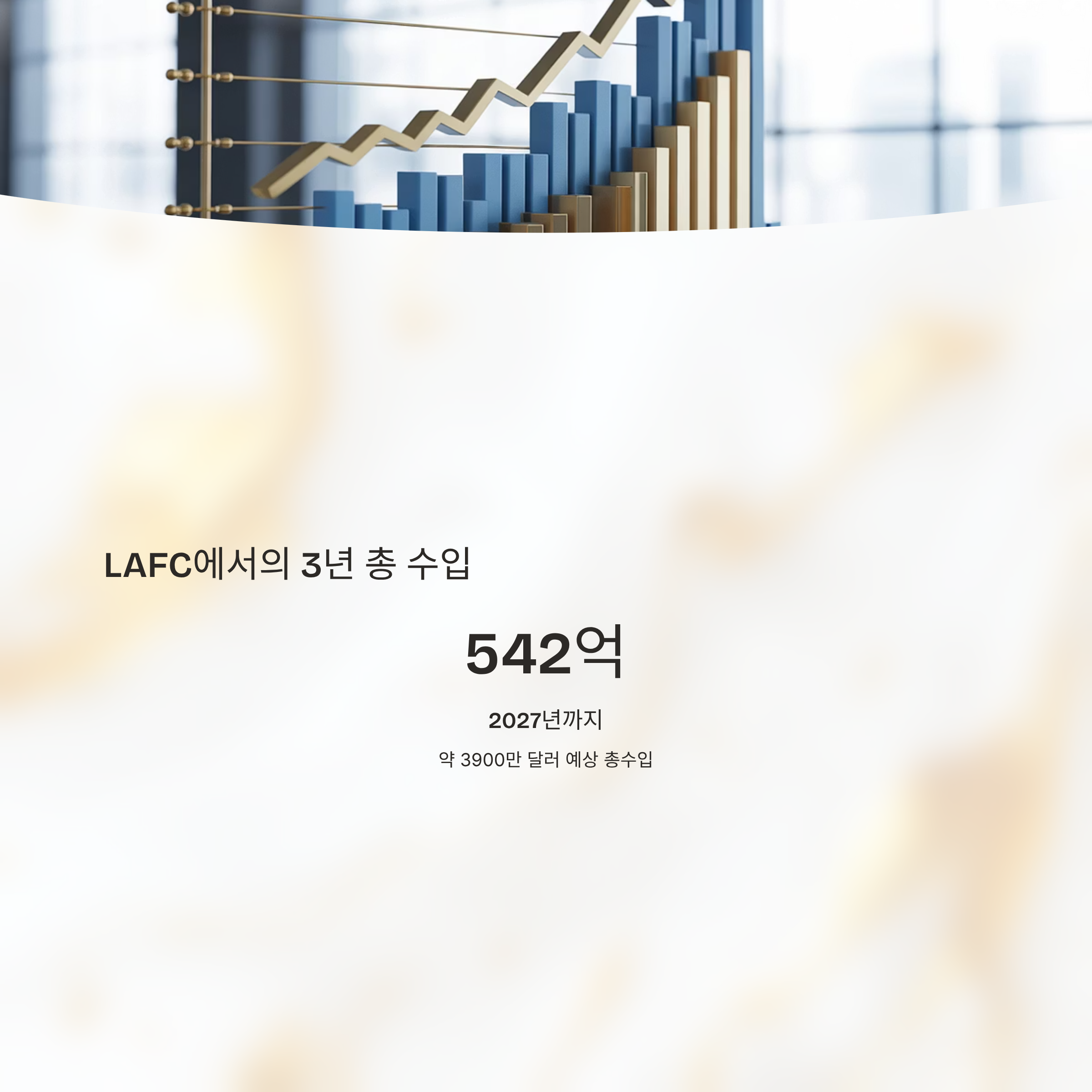 현재 확정된 연봉으로 계산하면, 손흥민이 2027년까지 LAFC에서 받을 총 수입은 약 3900만 달러(약 542억원)에 달할 것으로 예상됩니다.