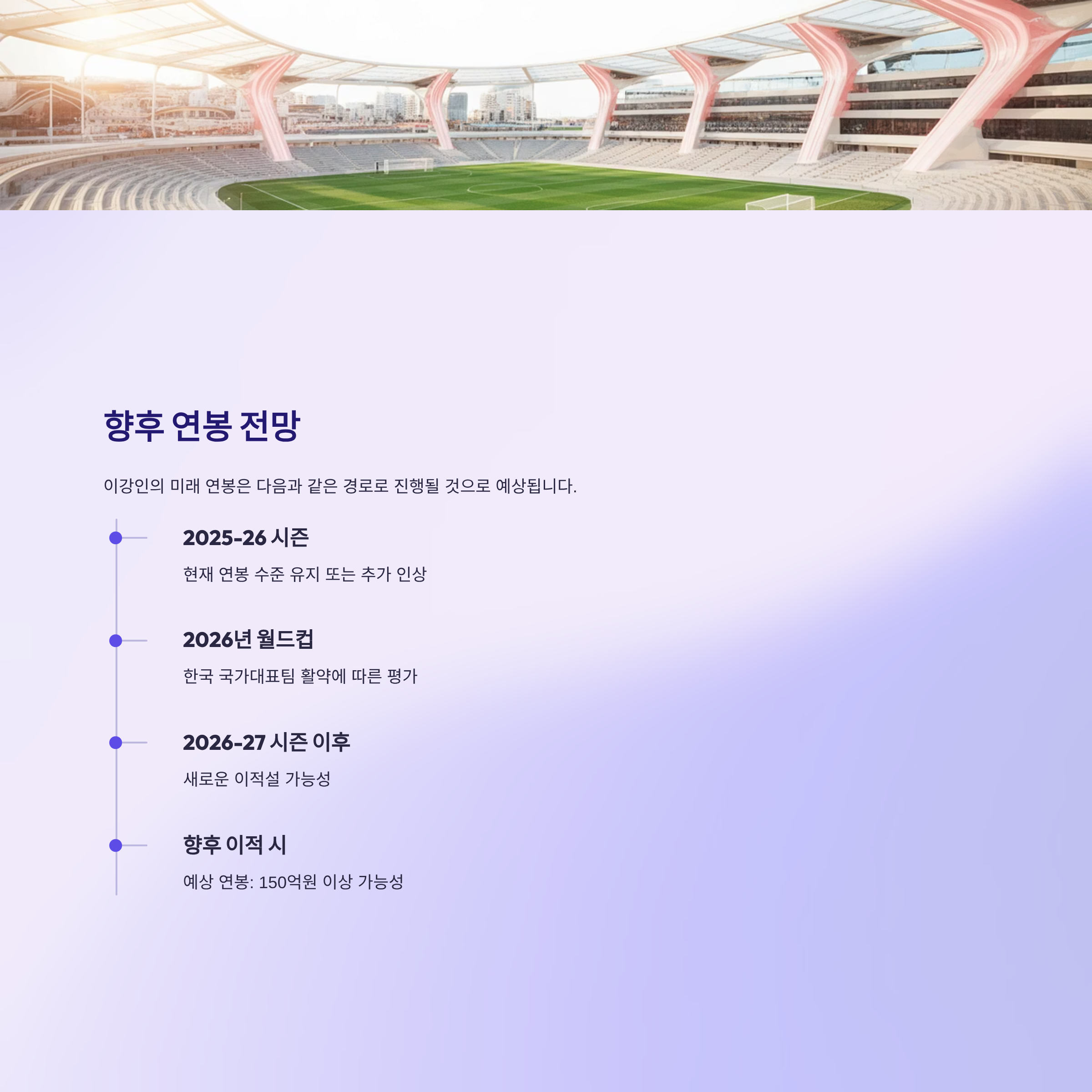 2026년 월드컵과 그 이후를 향해 PSG에서 자신의 가치를 더욱 증명해나갈 이강인. 지금의 108억원 연봉은 그의 성공의 시작점일 뿐, 앞으로의 성장이 더욱 기대되는 이유입니다.