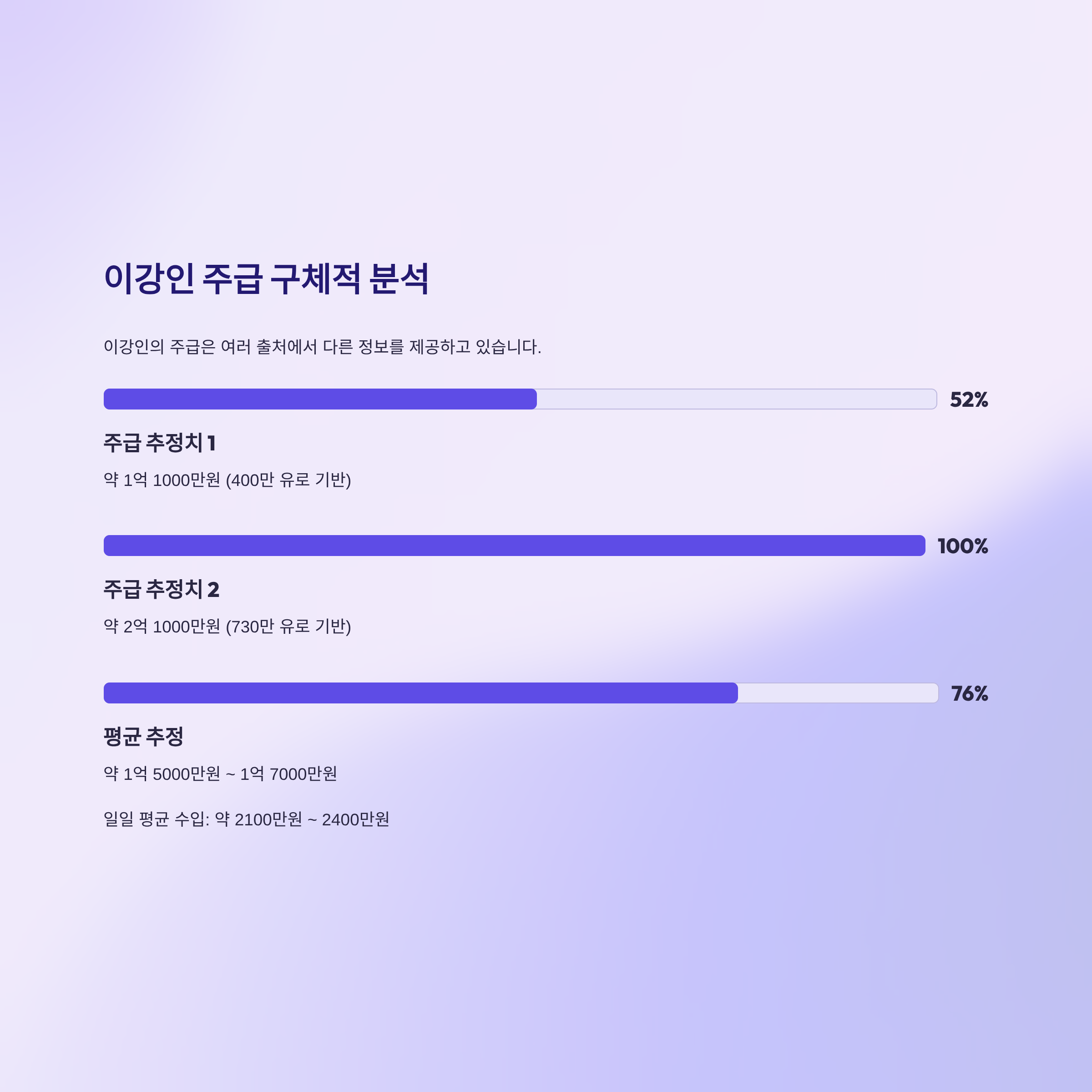 주급 추정치 2: 약 2억 1000만원 (730만 유로 기반)