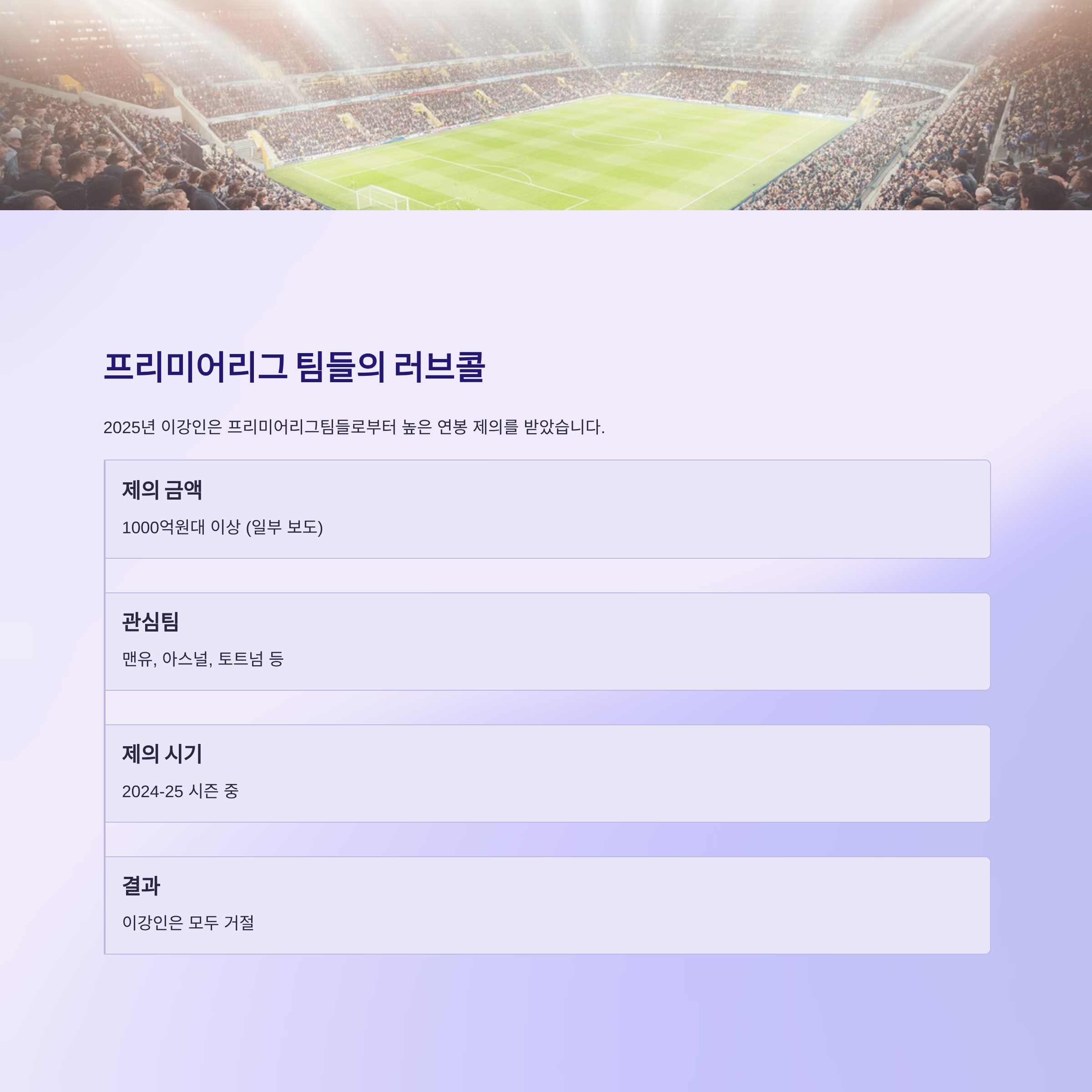 2025년 이강인은 프리미어리그팀들로부터 높은 연봉 제의를 받았습니다.