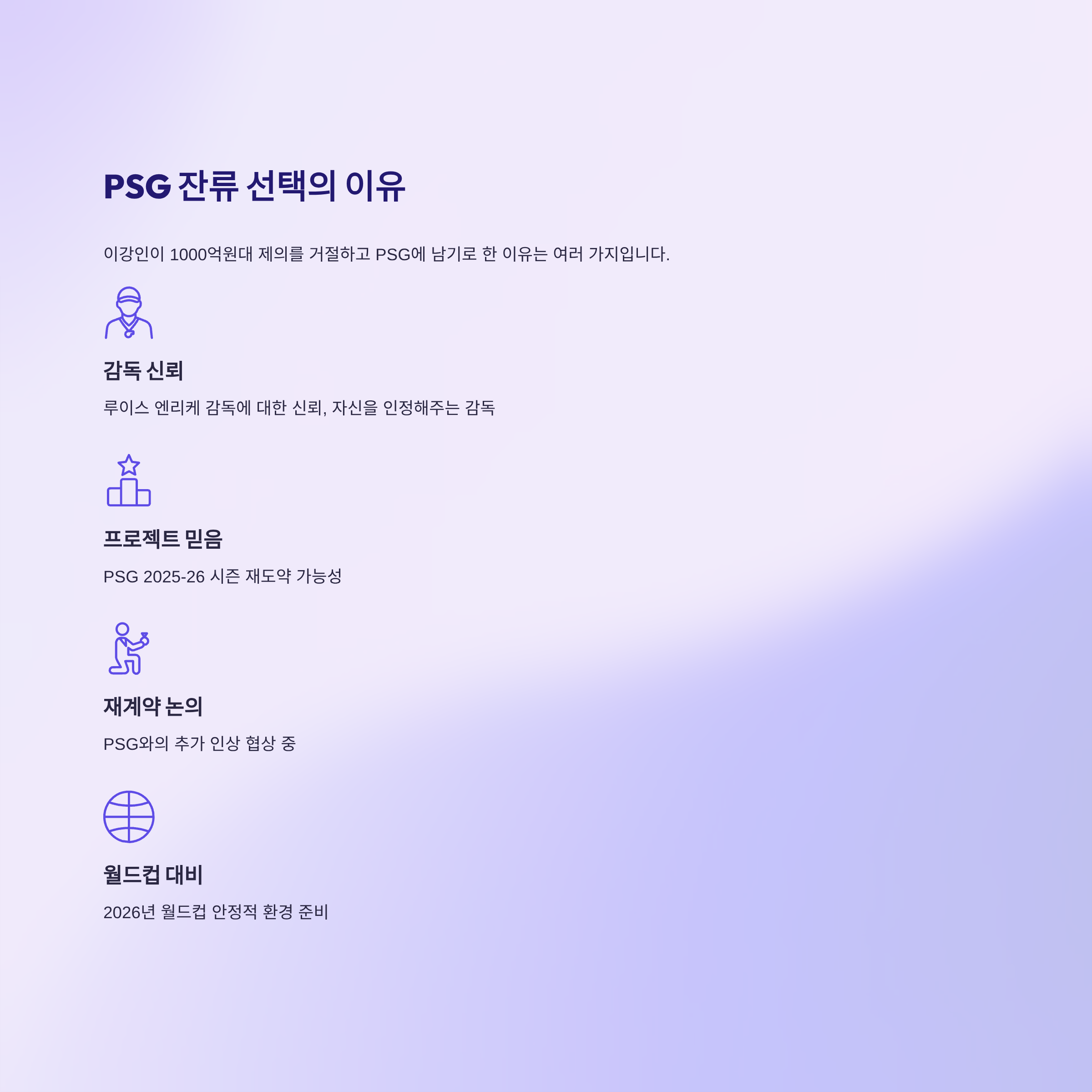 이강인의 PSG 잔류와 연봉 상향은 2026년 월드컵 대비 전략으로 분석됩니다.