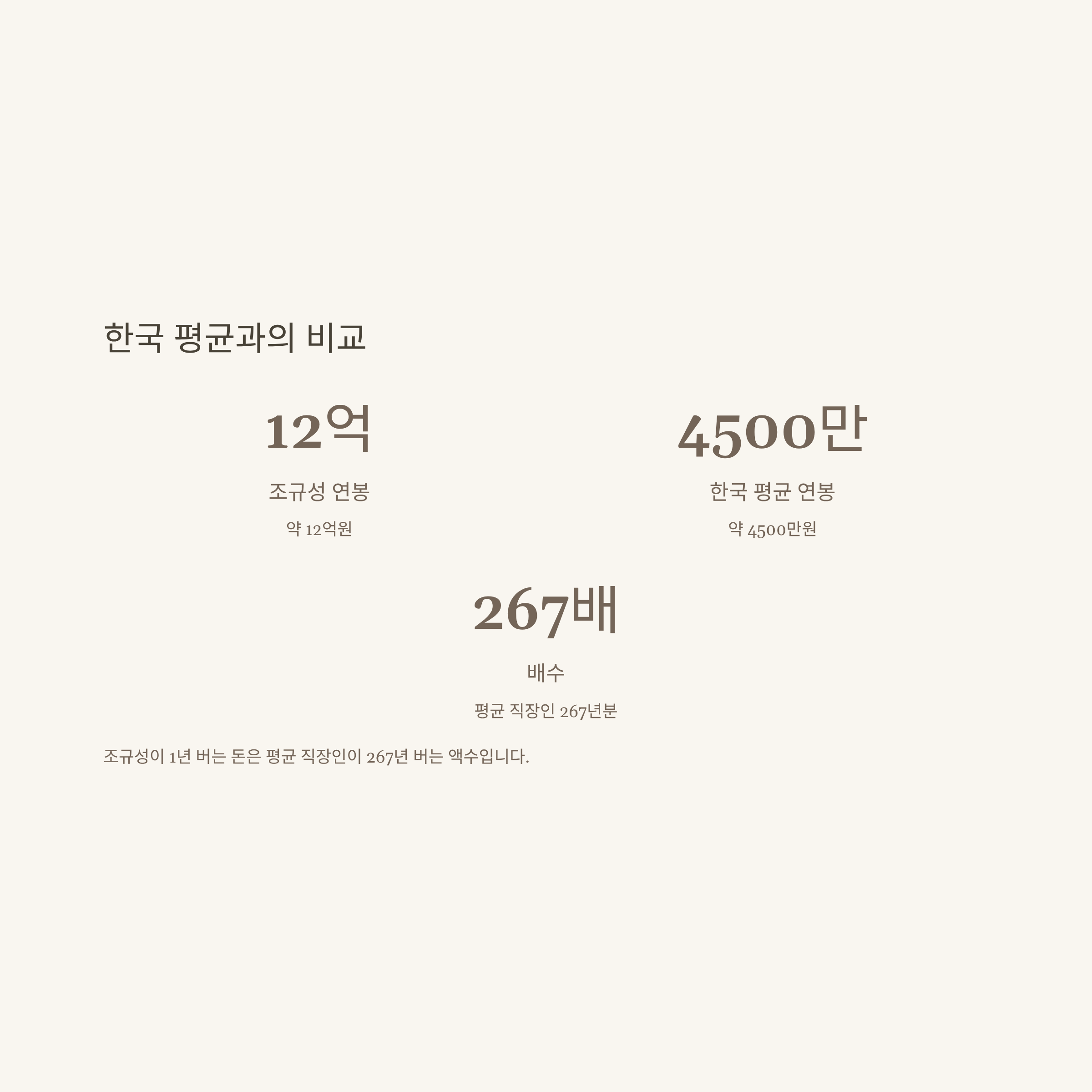 의미: 조규성이 1년 버는 돈은 평균 직장인이 267년 버는 액수