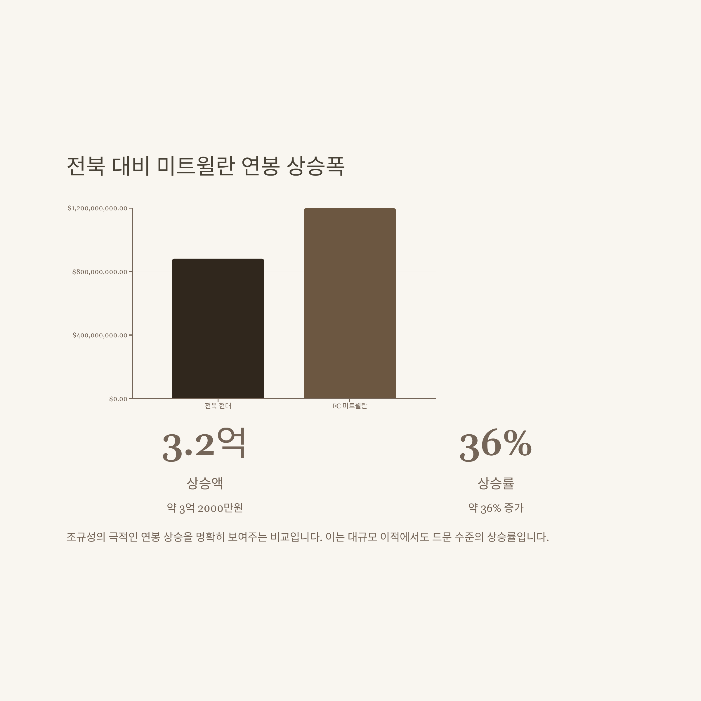 - 2020-2022년 전북 현대: 약 8억 8000만원 (증가 추세)