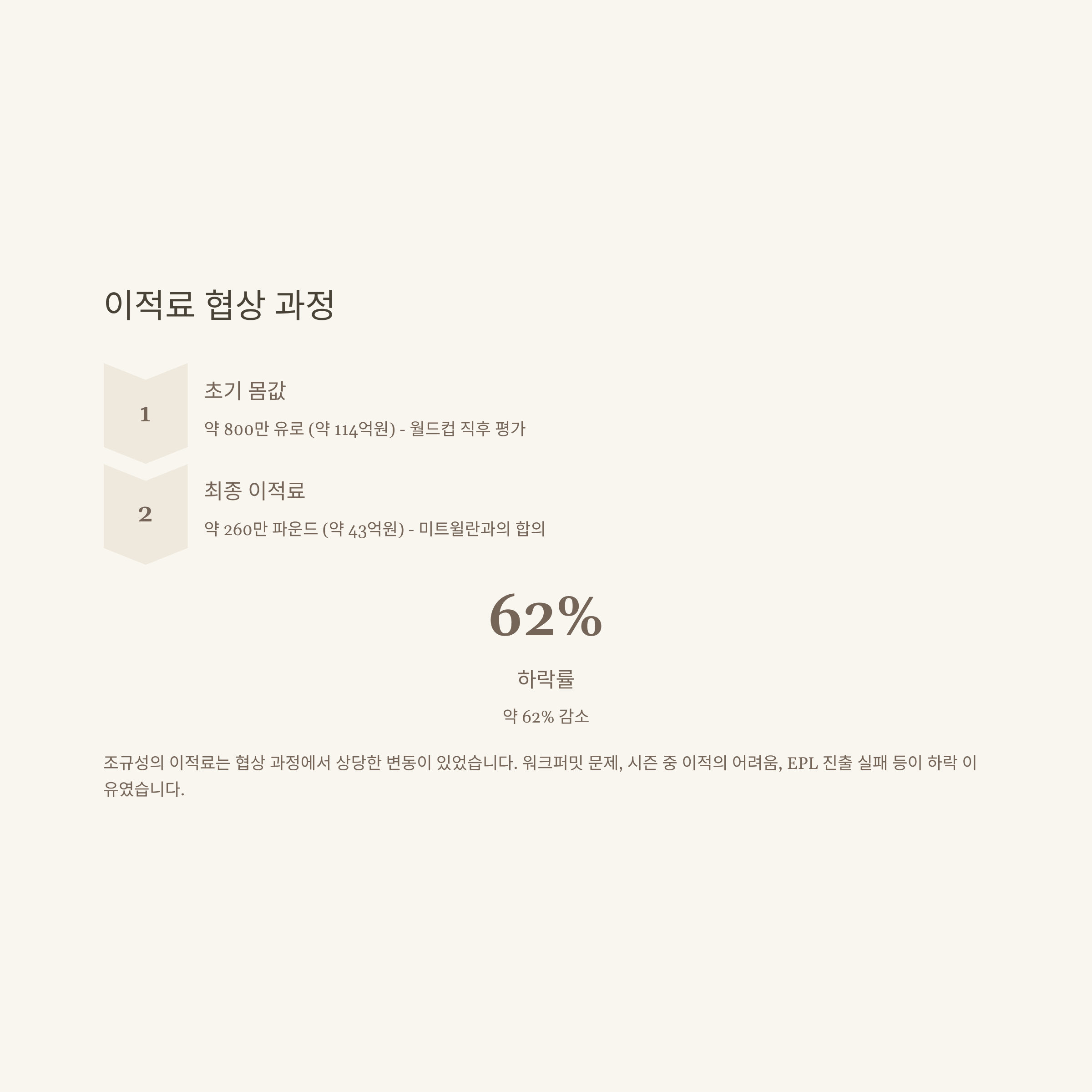 초기 몸값: 약 800만 유로 (약 114억원) - 월드컵 직후 평가