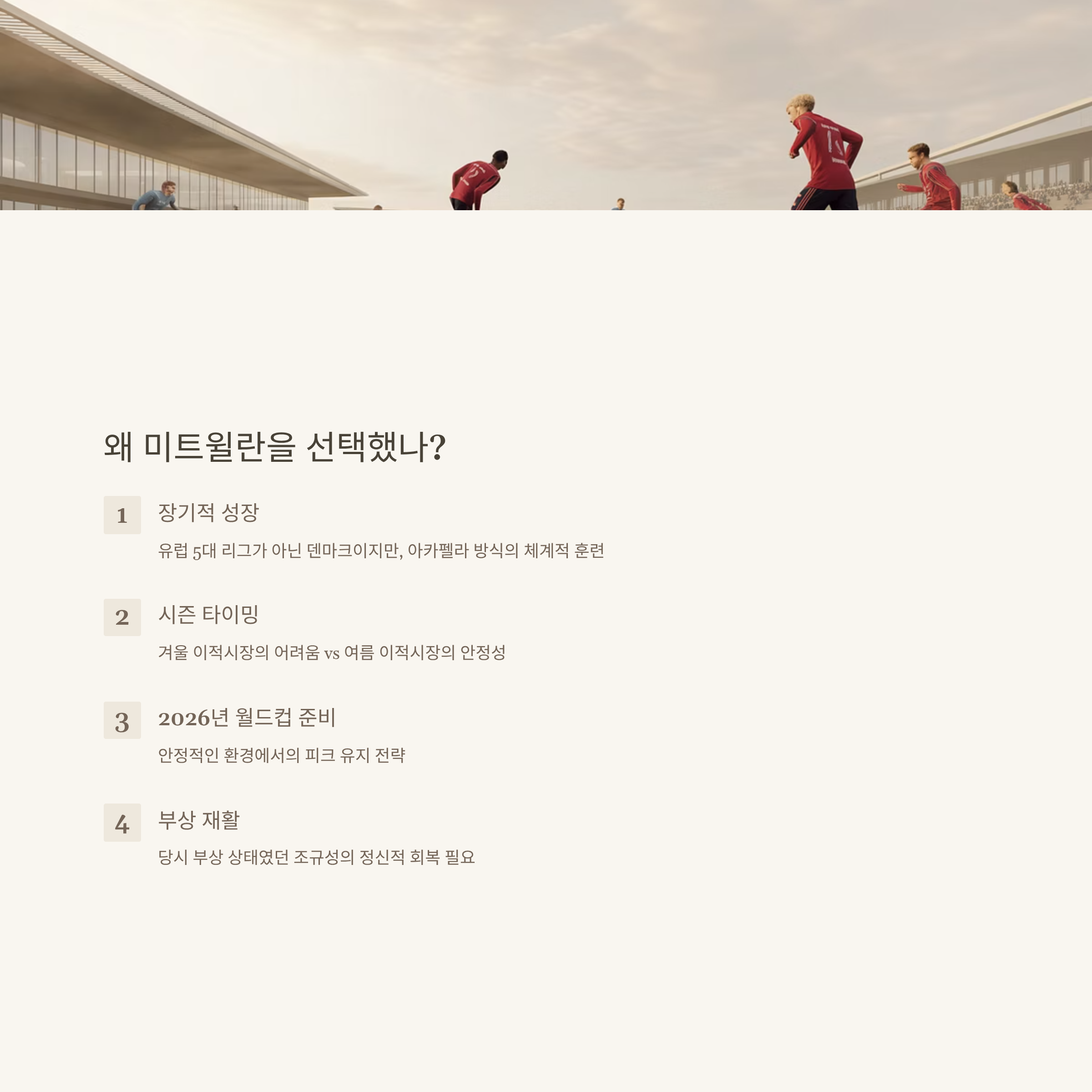 결국 미트윌란 선택: 장기적 성장 가능성을 고려한 전략적 결정