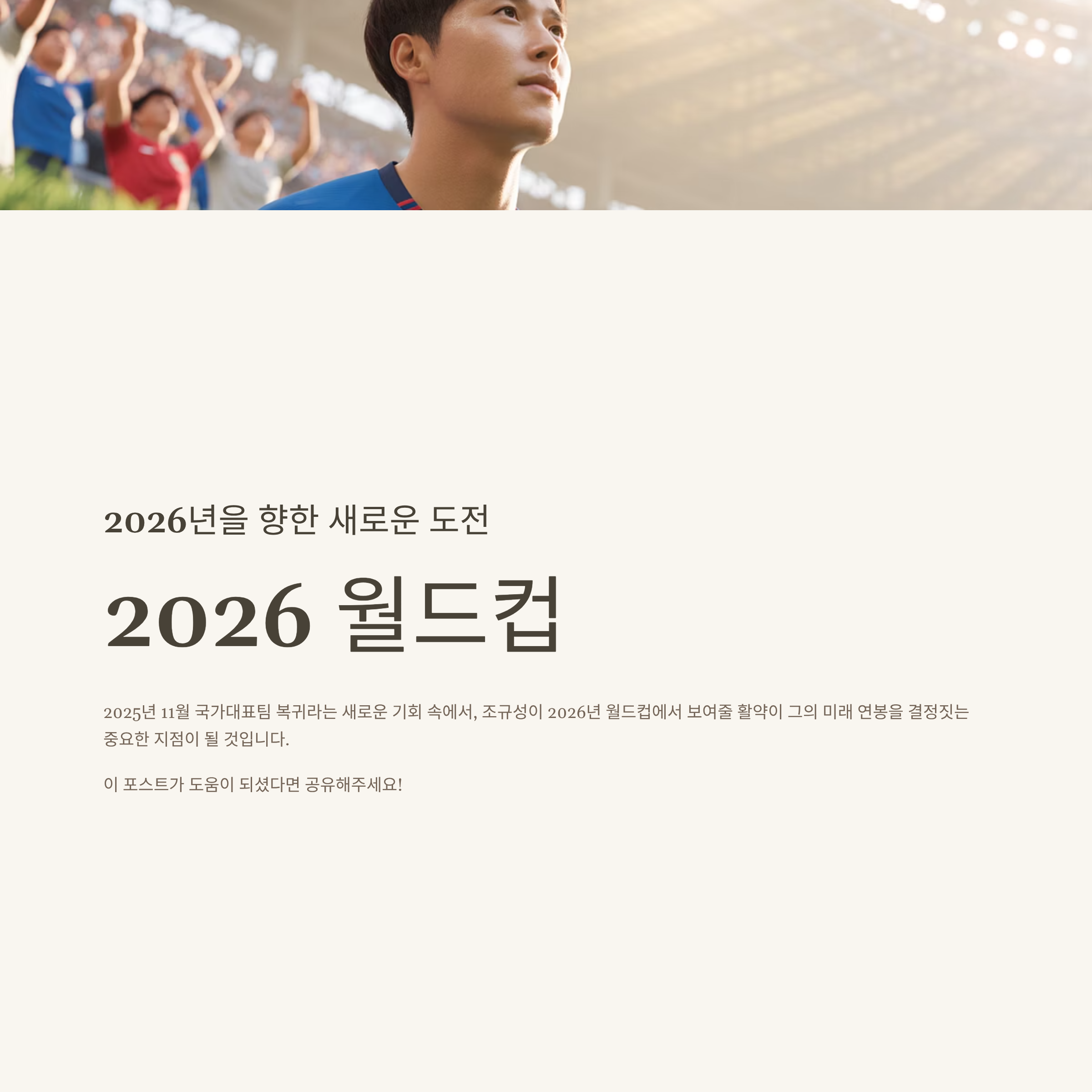 2025년 11월 국가대표팀 복귀라는 새로운 기회 속에서, 조규성이 2026년 월드컵에서 보여줄 활약이 그의 미래 연봉을 결정짓는 중요한 지점이 될 것입니다.