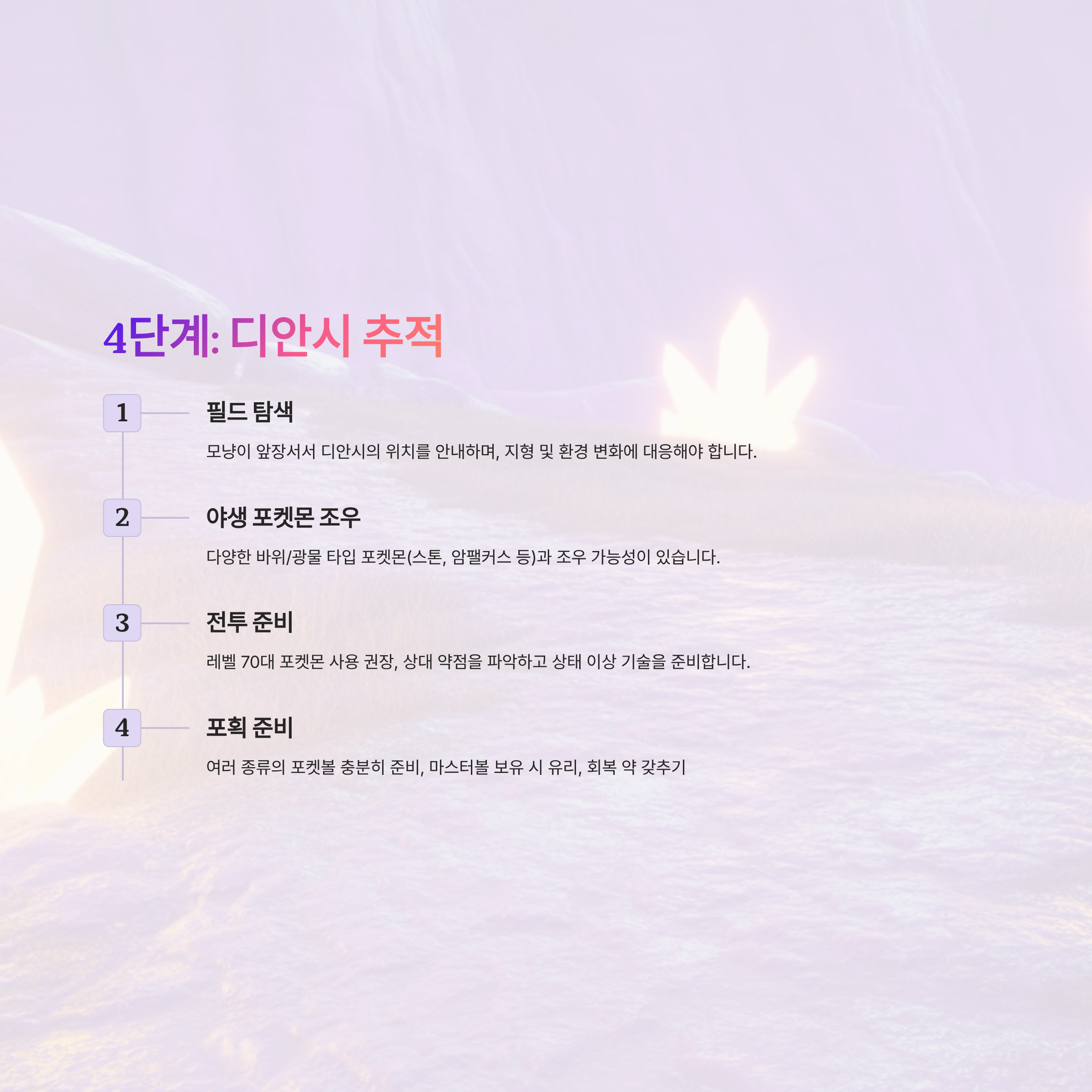 본문에서는 디안시나이트 받기부터 미션 진행, 포획 방법, 메가디안시로의 진화까지 게임 플레이어들이 알아야 할 모든 정보를 단계별로 상세하게 정리해드립니다.