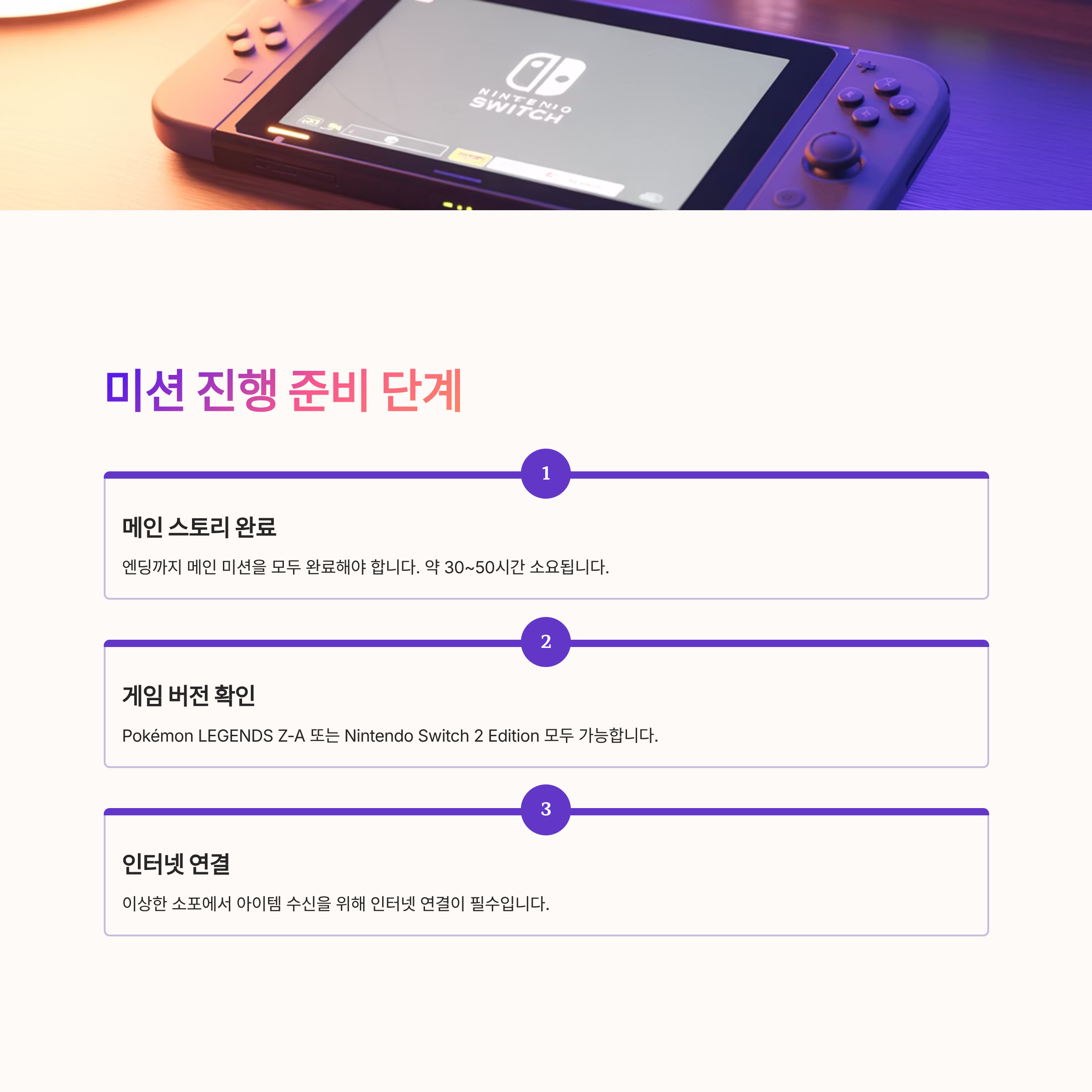게임 버전: Pokémon LEGENDS Z-A 또는 Pokémon LEGENDS Z-A Nintendo Switch 2 Edition 모두 가능
