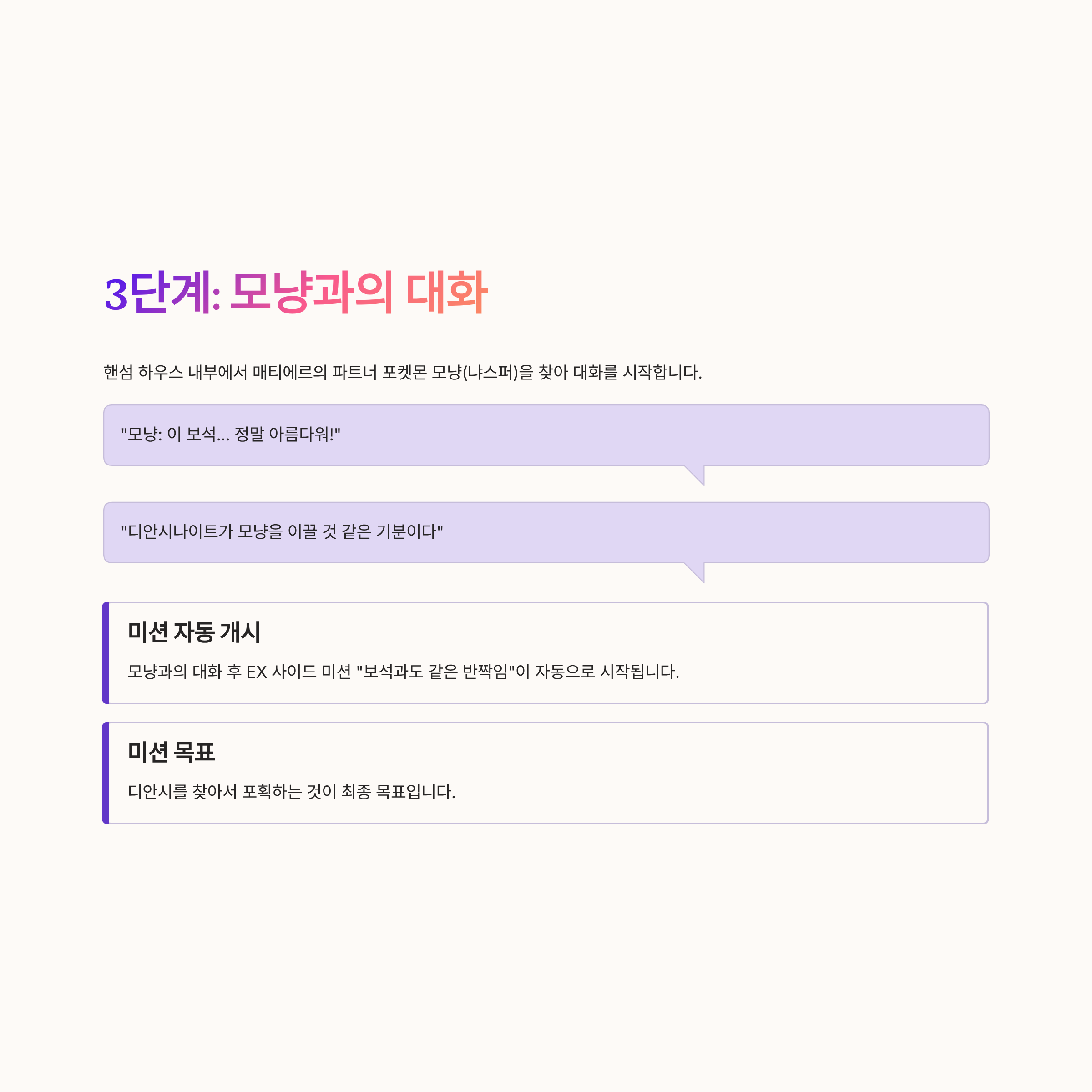 3) 3단계: 모냥과의 대화 - 미션 시작