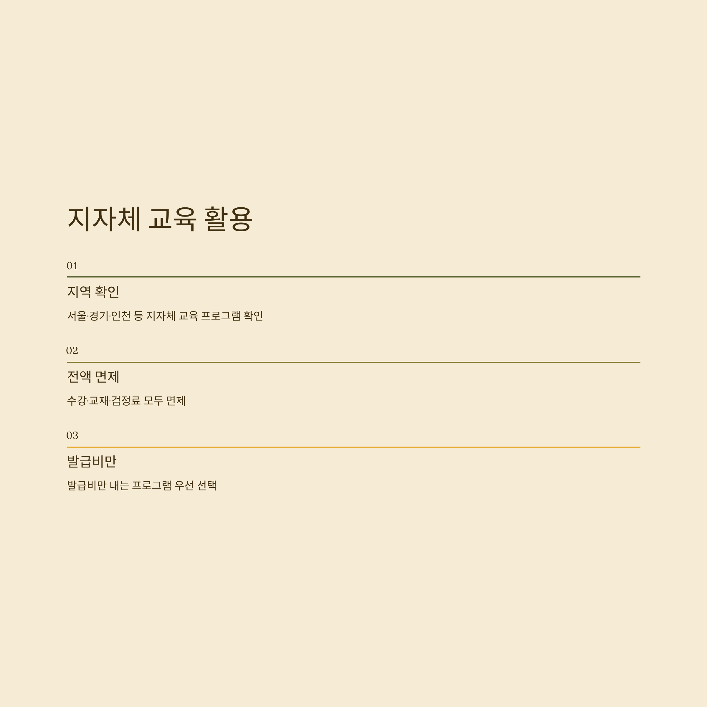 무료 수강 기관, 지자체 교육, 대형 이벤트, 카드사 할인 조합이면 누구나 저렴하게 취득 가능하니 꼭 최신 정보를 확인하세요.