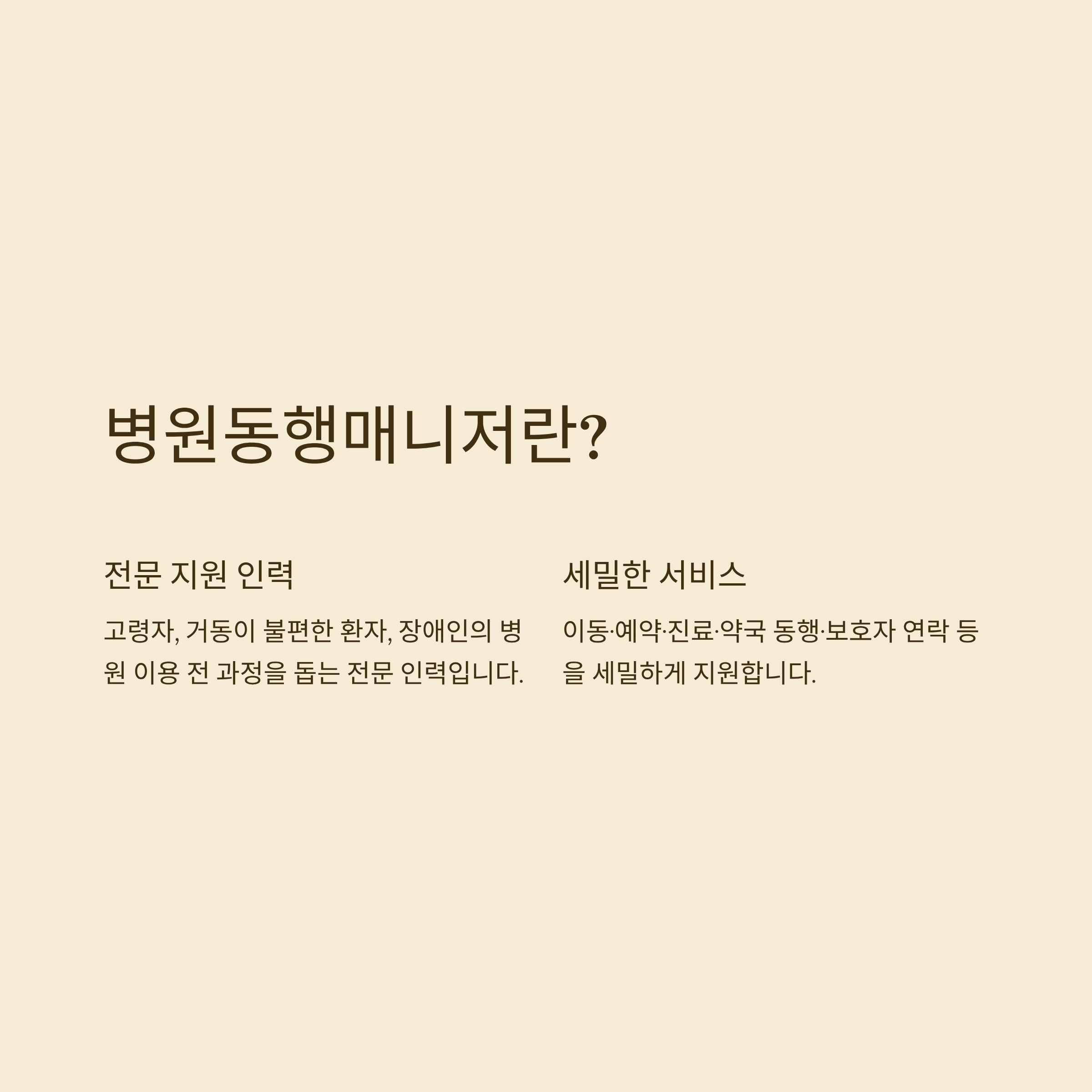 이동·예약·진료·약국 동행·보호자 연락 등을 세밀하게 지원합니다.