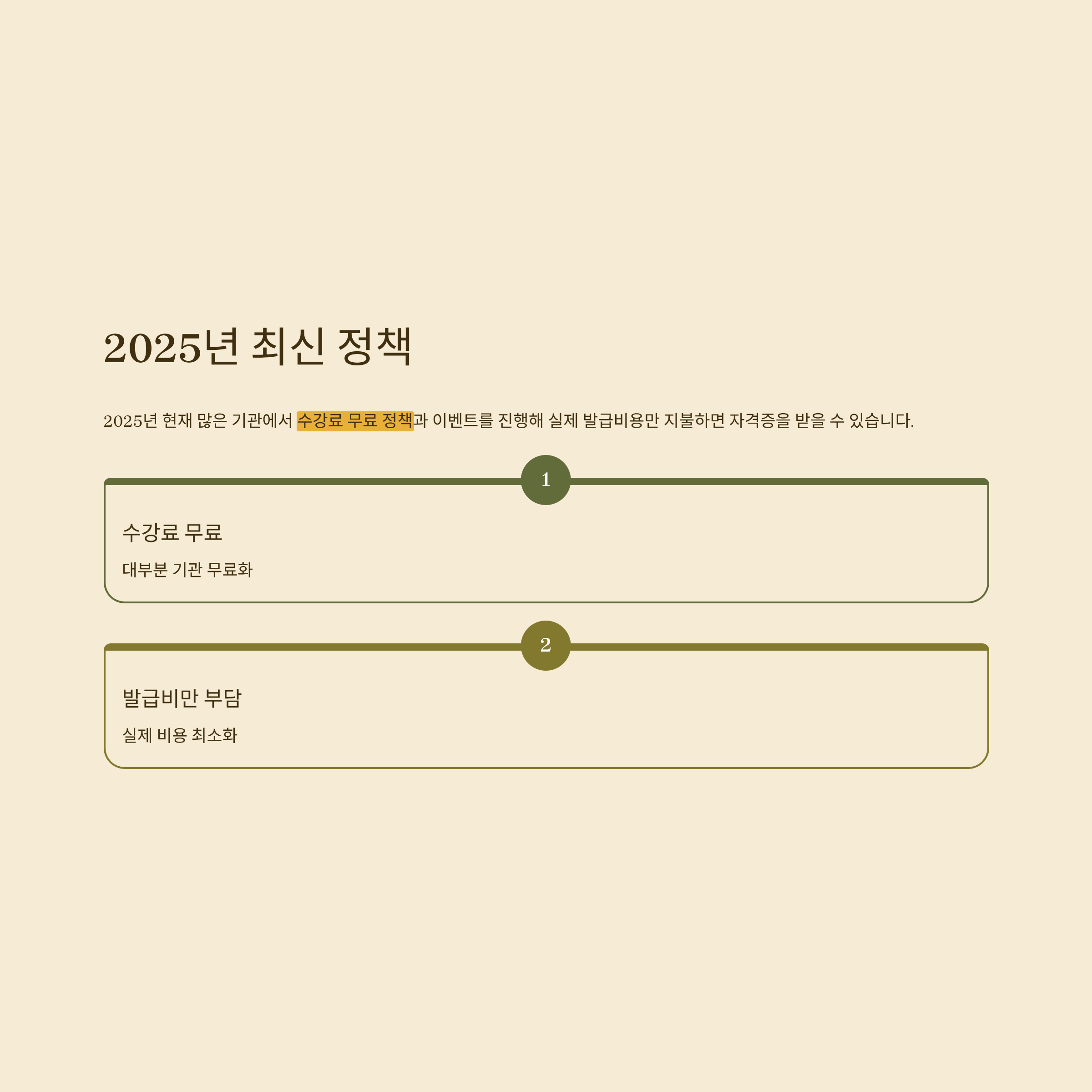 2025년 현재 많은 기관에서 수강료 무료 정책과 이벤트를 진행해 실제 발급비용만 지불하면 자격증을 받을 수 있습니다.