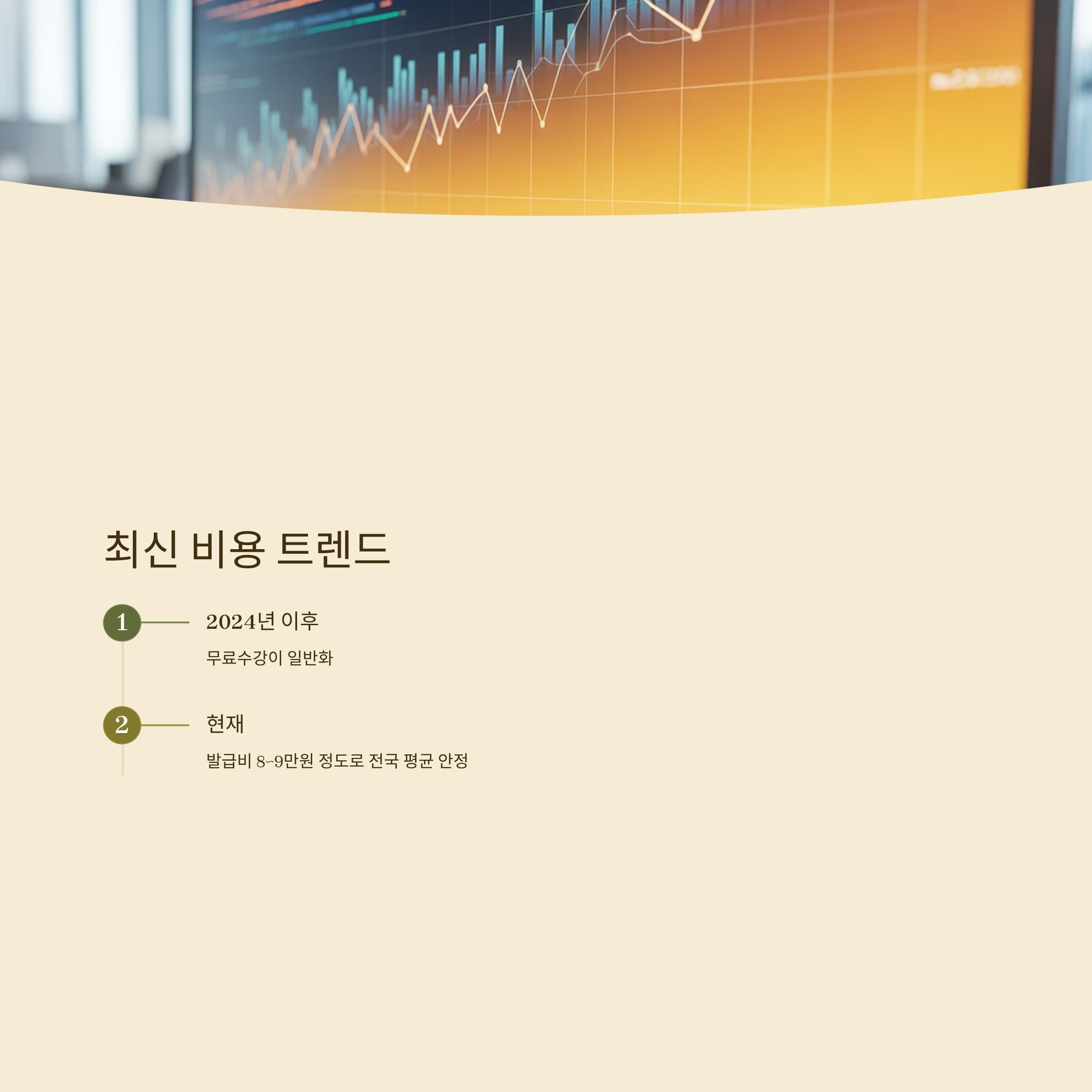 2024년 이후 무료수강이 일반화되고, 발급비 8~9만원 정도로 전국 평균이 안정되고 있습니다.