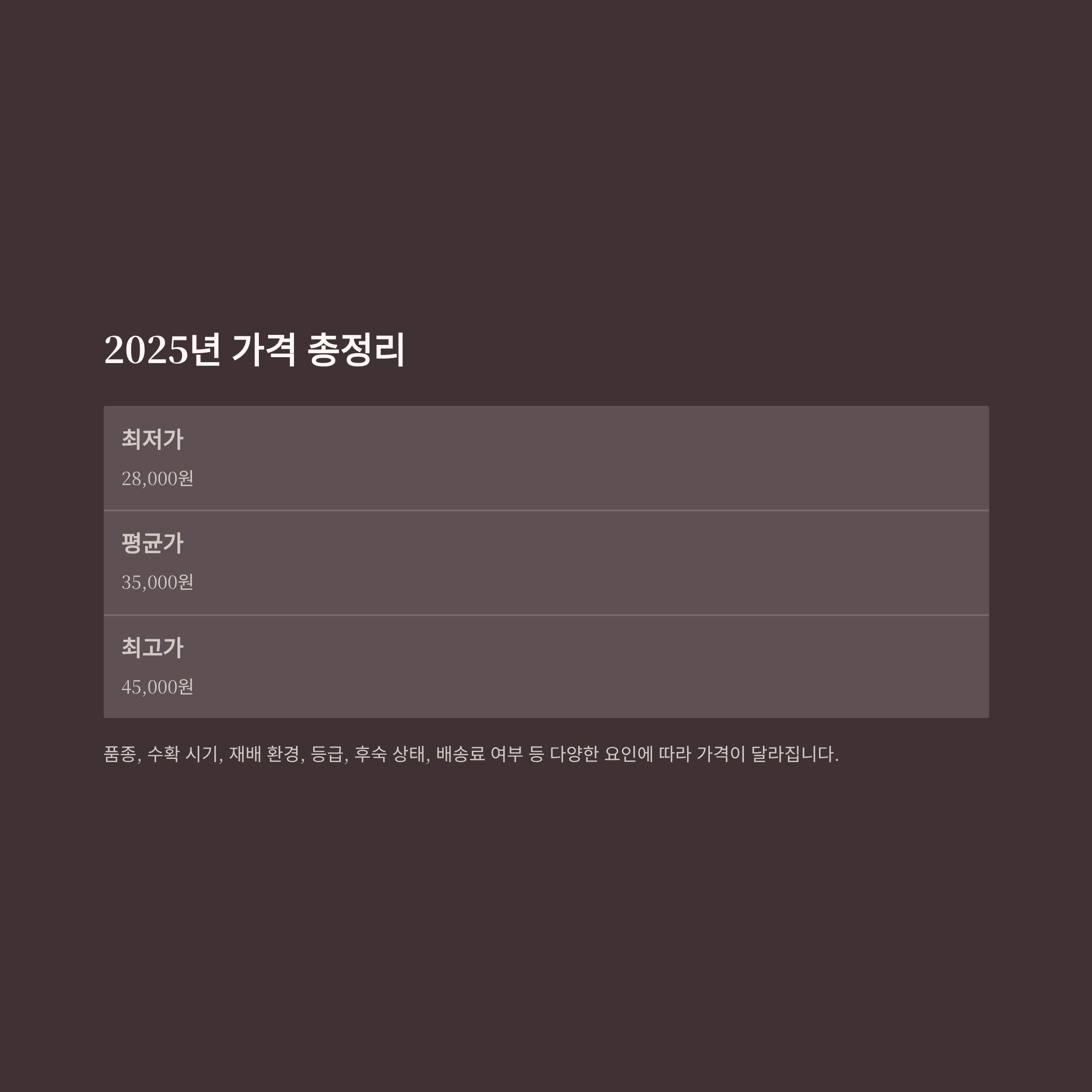 2025년 기준 고구마 10kg 가격은 28,000원에서 45,000원 사이로, 품종, 수확 시기, 재배 환경, 등급, 후숙 상태, 배송료 여부 등 다양한 요인에 따라 달라집니다.