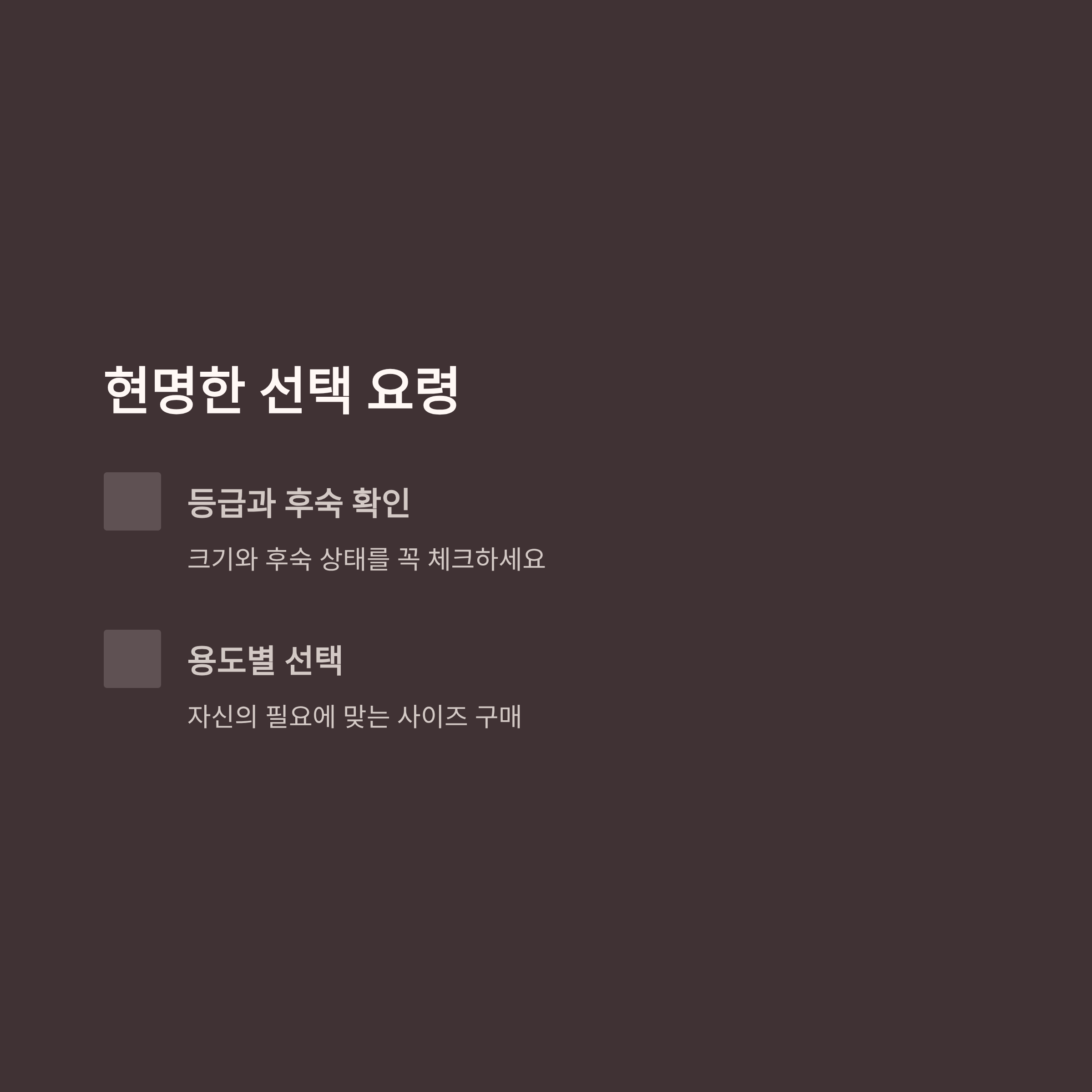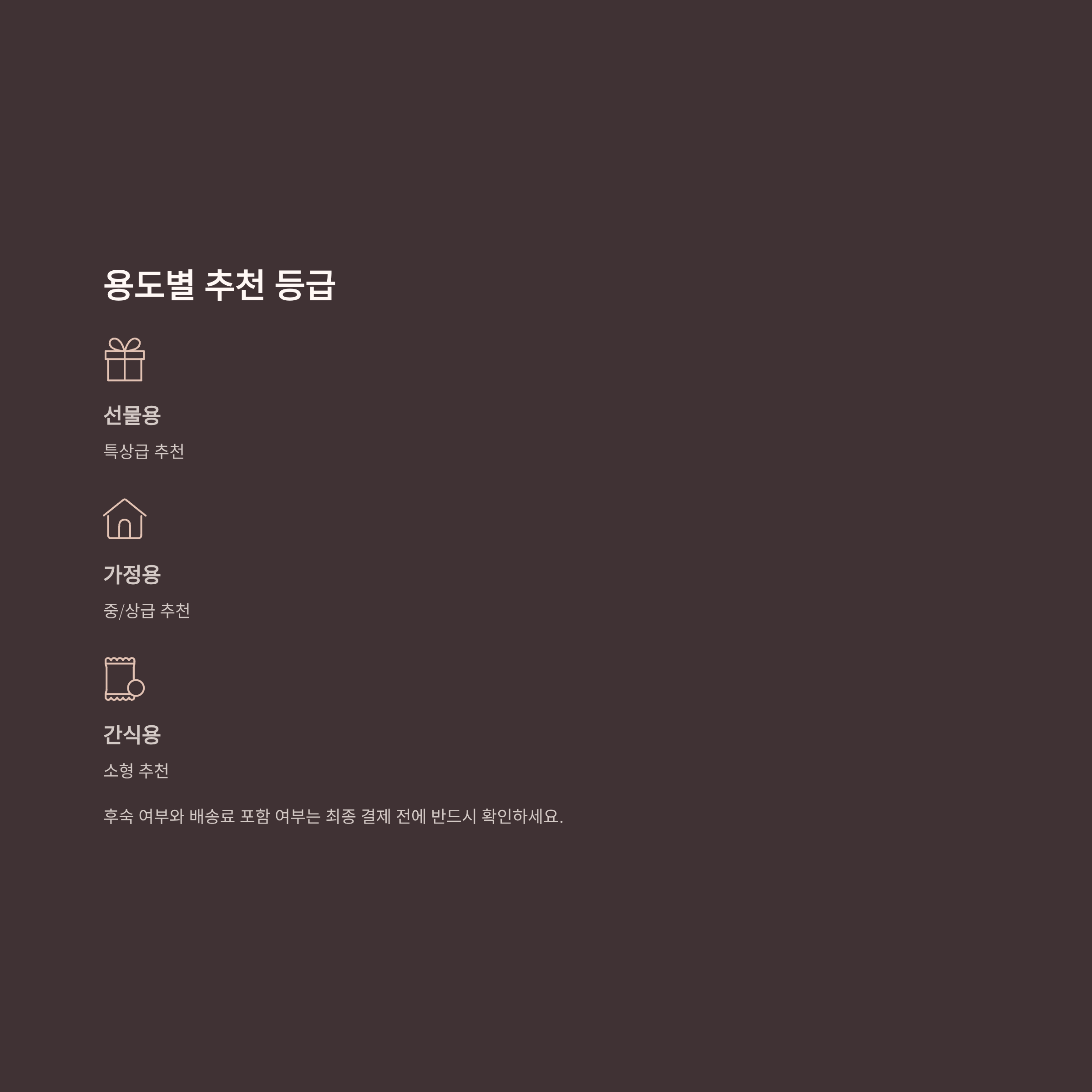 선물용이면 특상급, 가정용이면 중/상급, 간식용은 소형 추천합니다.