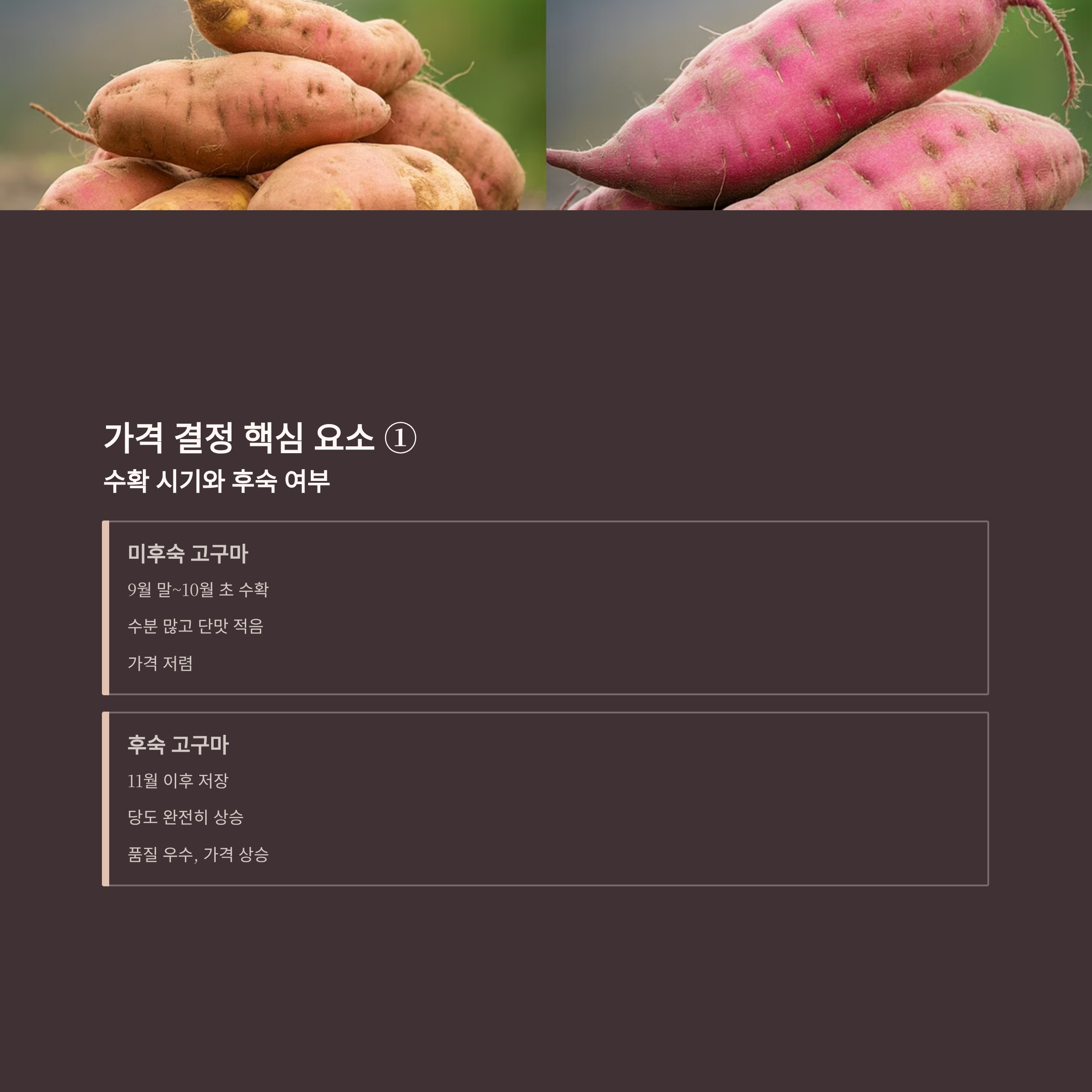 고구마 가격은 수확 직후와 저장·후숙 상태에 따라 크게 달라집니다.
