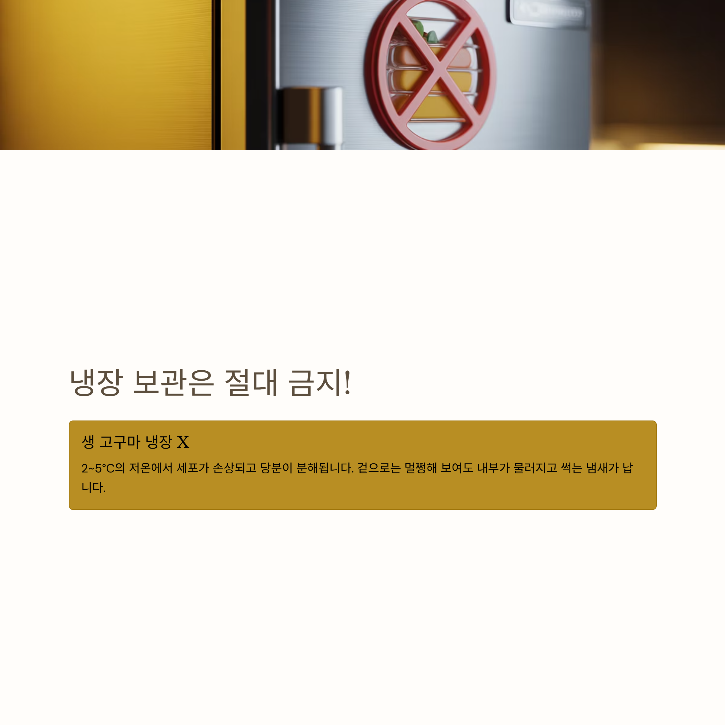냉장고(2~5°C)에 넣으면 세포가 손상되어 단맛이 사라지고 조직이 물러질 수 있습니다.