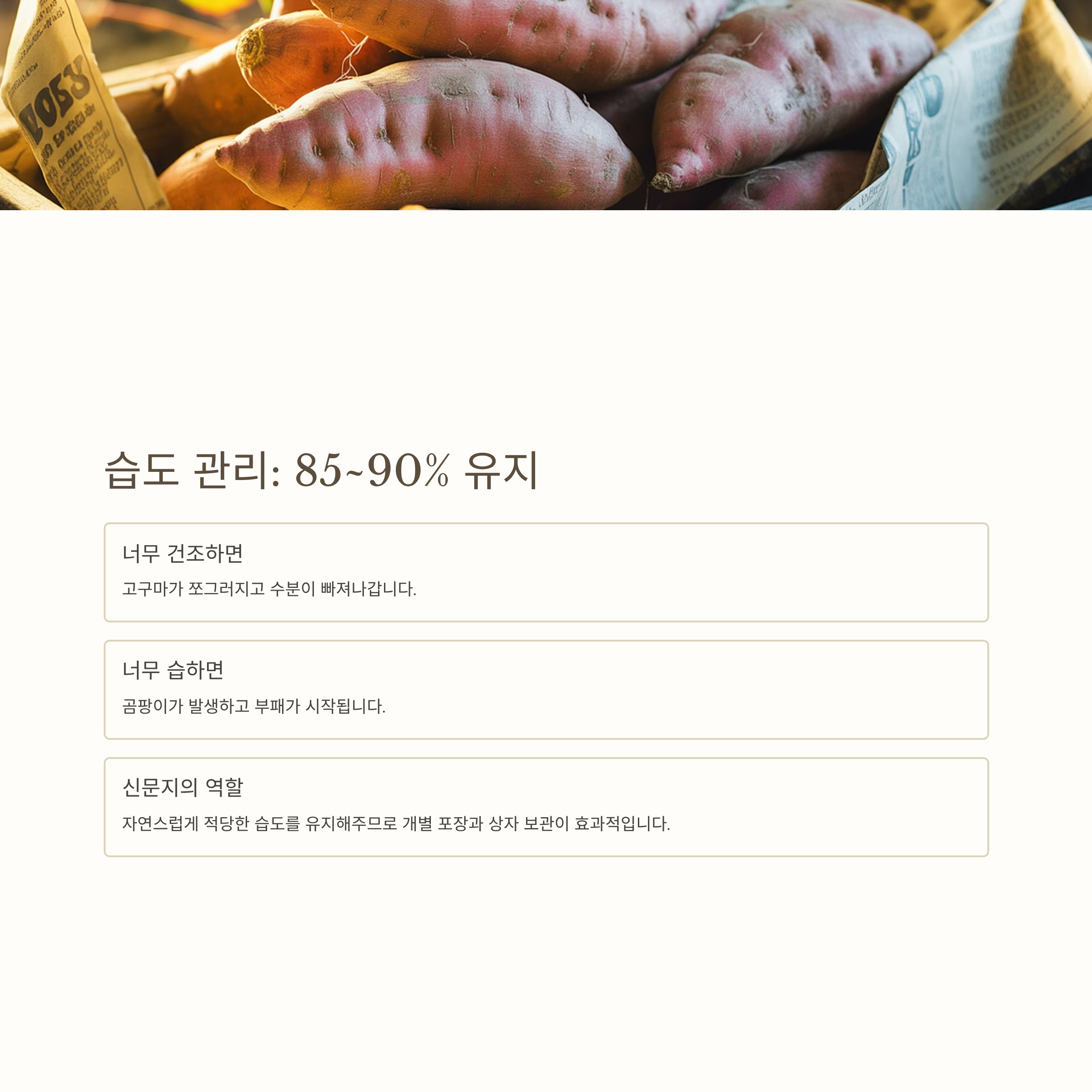 고구마는 수확 후 보관 방법에 따라 당도, 식감, 저장 기간이 완전히 달라집니다.