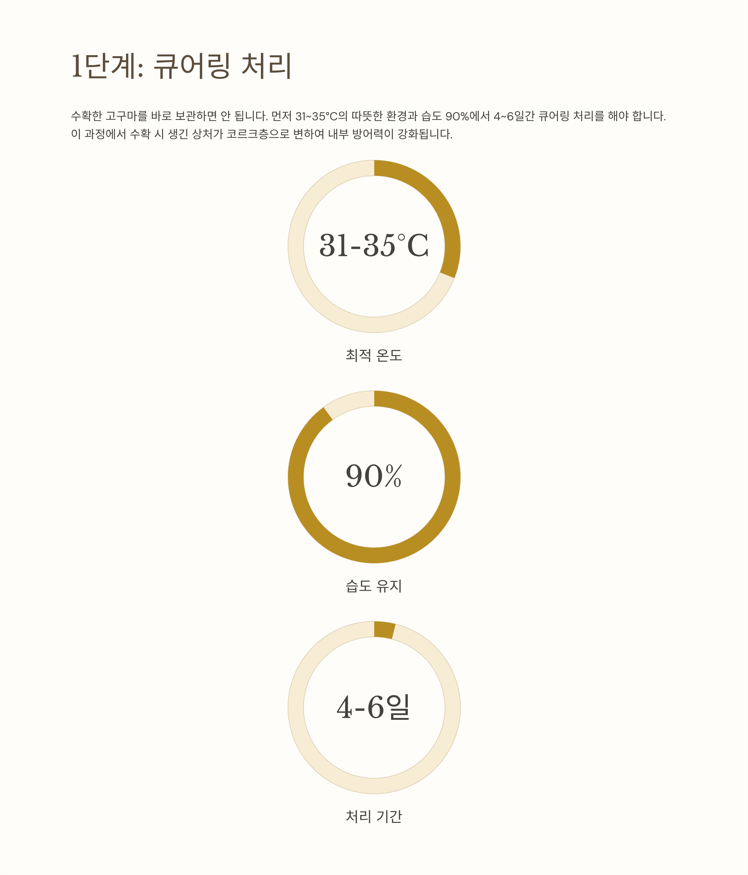 이 과정에서 수확 시 생긴 상처가 코르크층으로 변하여 내부 방어력이 강화됩니다.