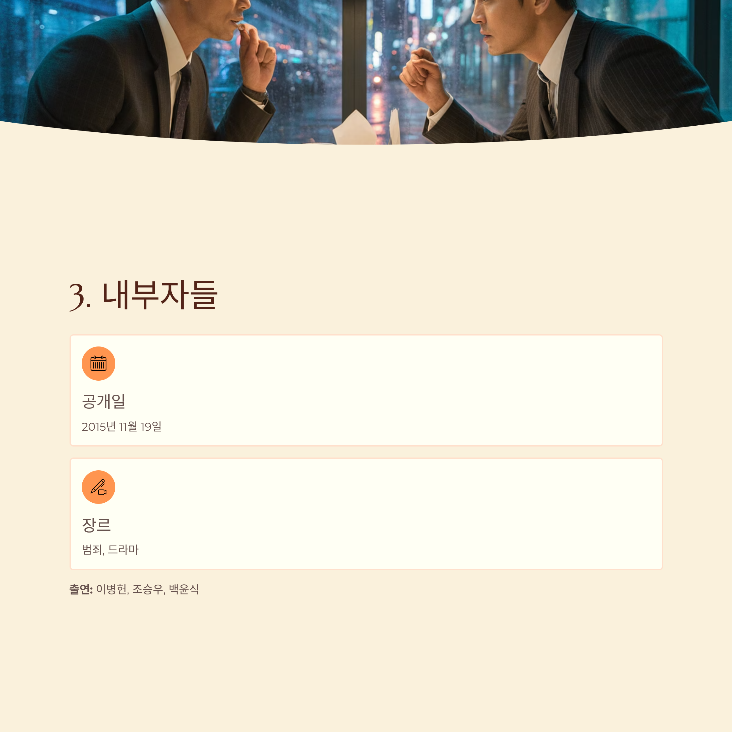 액션과 반전을 좋아하는 관객이라면 절대 놓쳐서는 안 될 작품입니다. 복잡한 인물관계를 정리하면서 보면 더욱 몰입이 높아집니다.