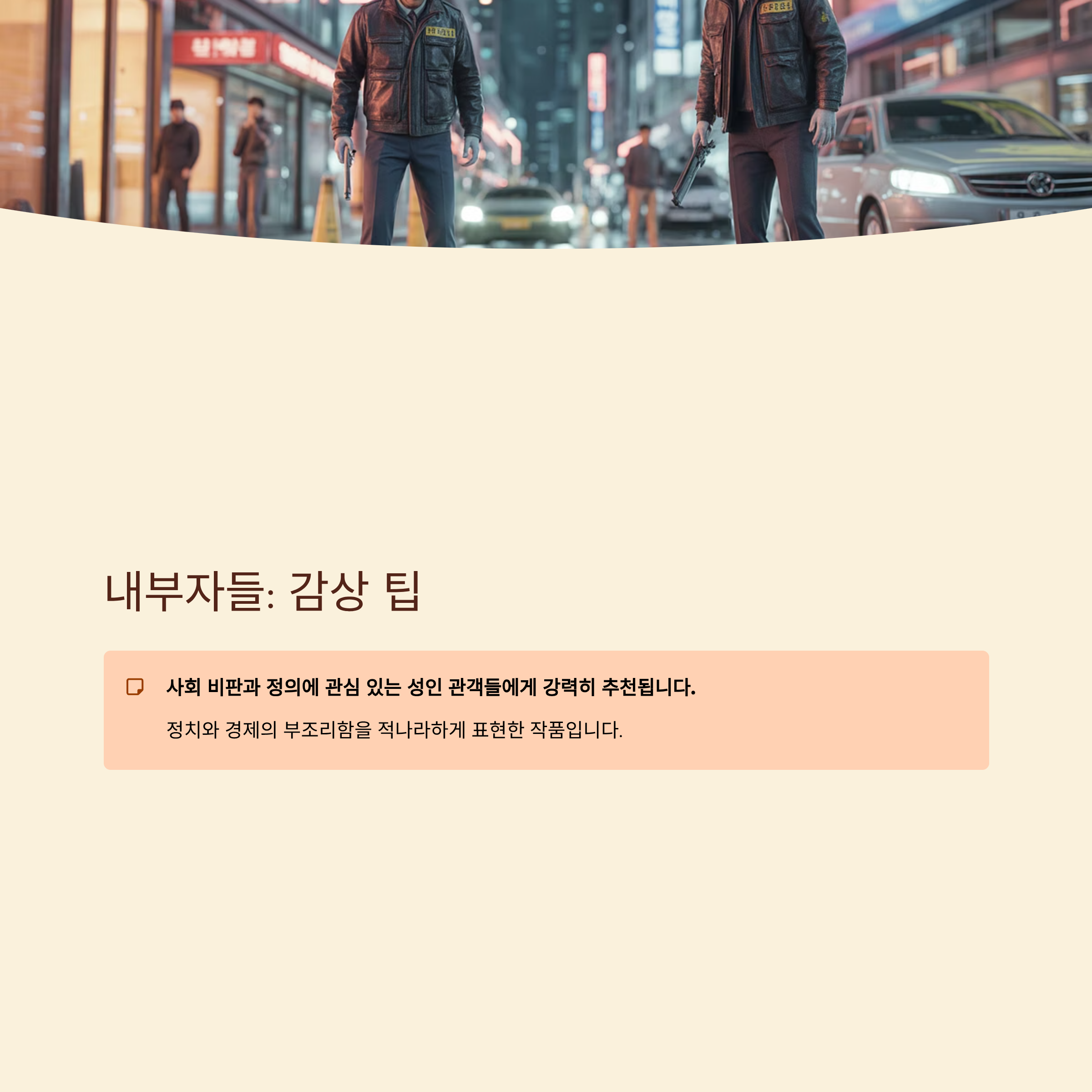 사회 비판과 정의에 관심 있는 성인 관객들에게 강력히 추천됩니다.