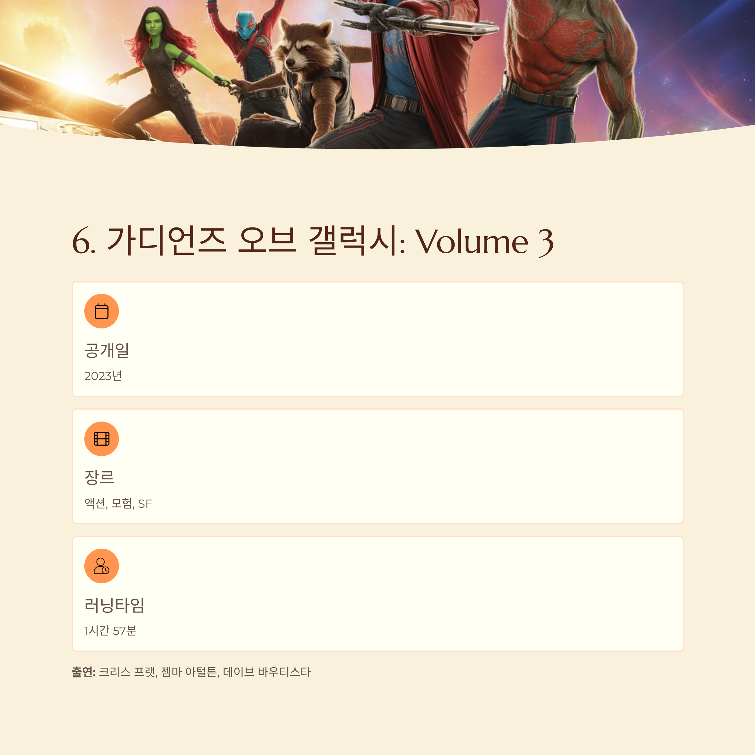 공개일: 2023년 | 장르: 액션, 모험, SF | 출연: 크리스 프랫, 젬마 아털튼, 데이브 바우티스타 | 러닝타임: 1시간 57분