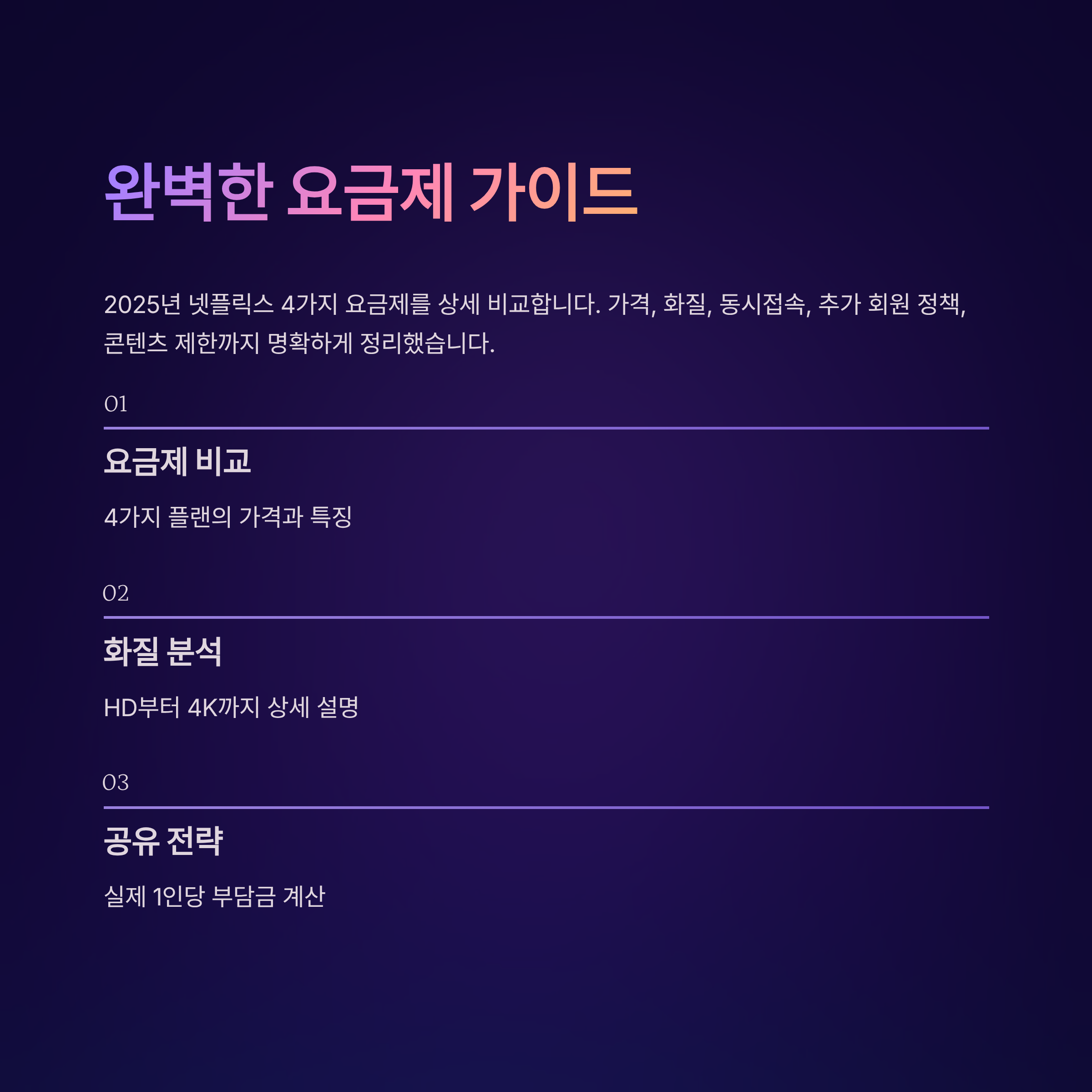 각 요금제의 가격, 화질, 동시접속 인원, 추가 회원 정책, 콘텐츠 제한 사항을 명확하게 정리해 당신에게 최적의 선택을 할 수 있도록 안내하겠습니다.