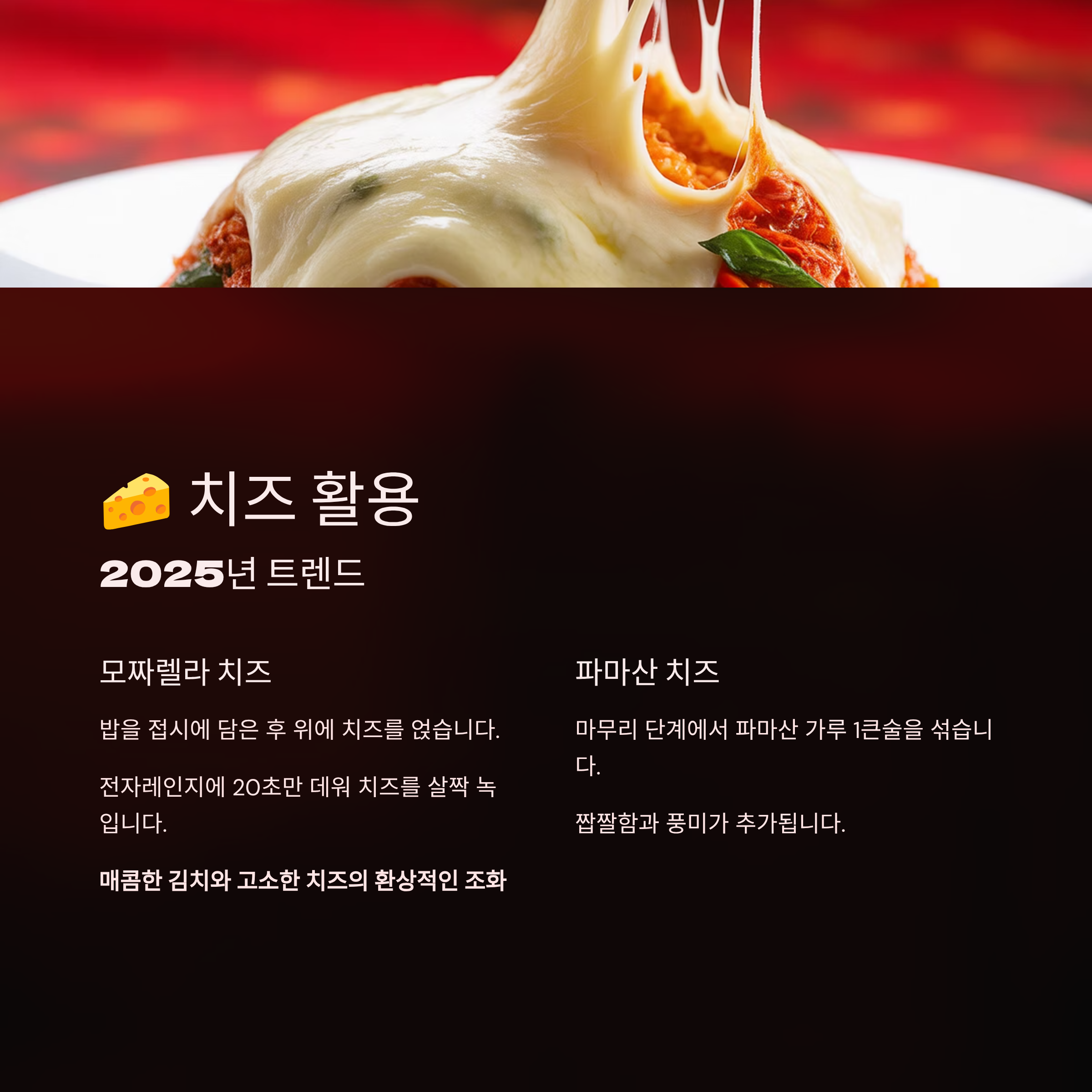 2025년 트렌드로는 광주 김치나 지역 특산 김치가 고급 김치볶음밥 재료로 각광받고 있습니다.
