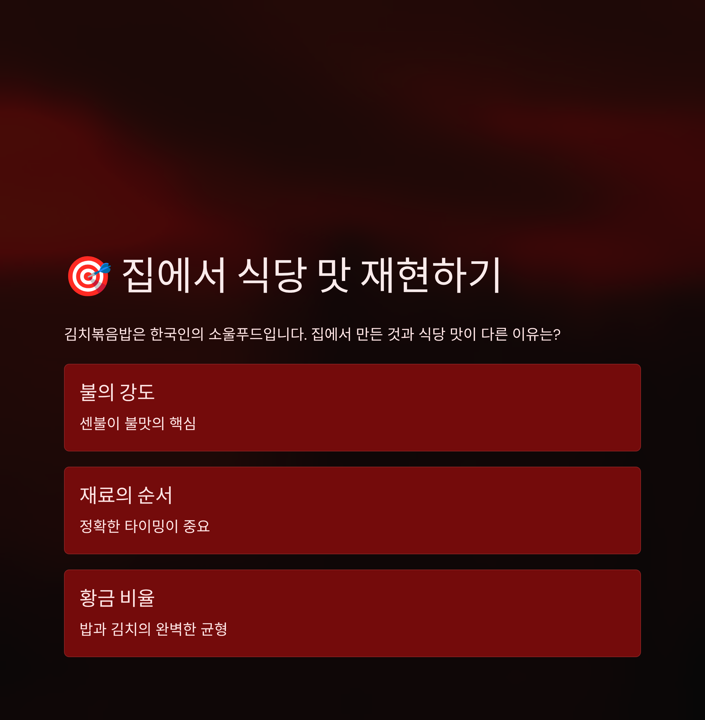 🎯 집에서 식당 맛 재현하기, 김치볶음밥의 비결