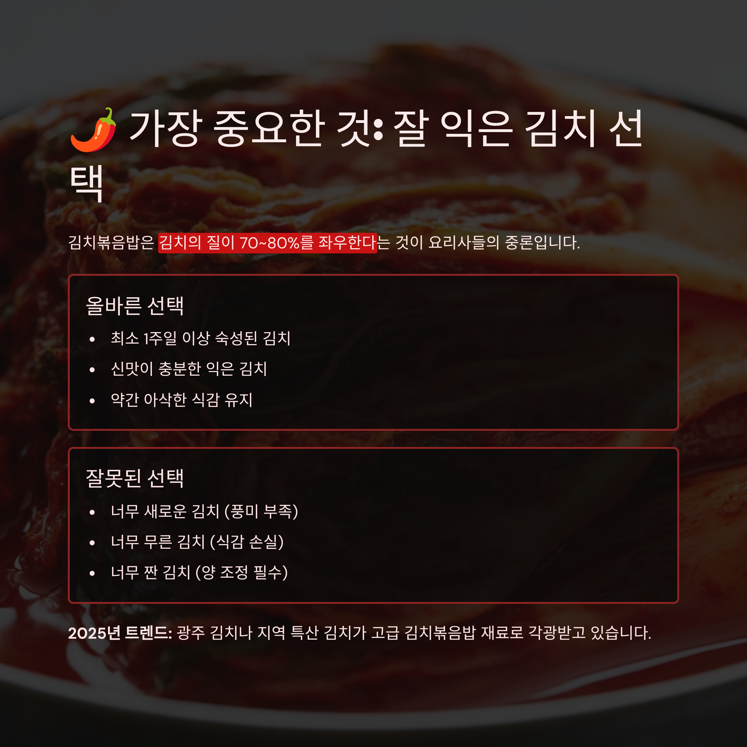 🍳 김치볶음밥 맛있게 만드는법 2025 | 불맛 살리는 황금 비율·3단계 조리법·센불 기술
